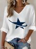 Rugby team color casual Women's Football Print V Neck T-shirt