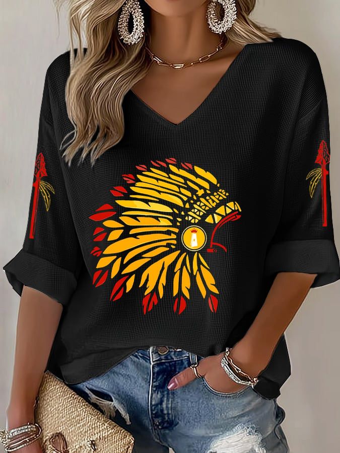 Women's Football Print Waffle Long Sleeve T-Shirt