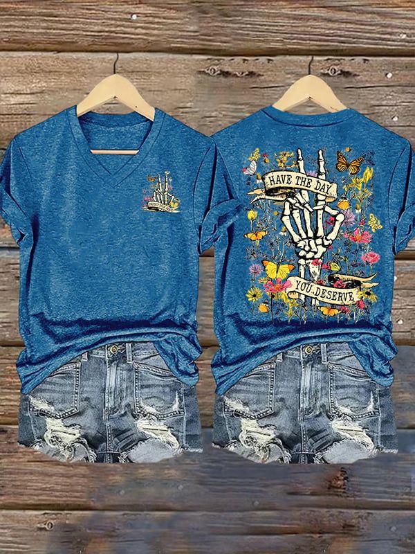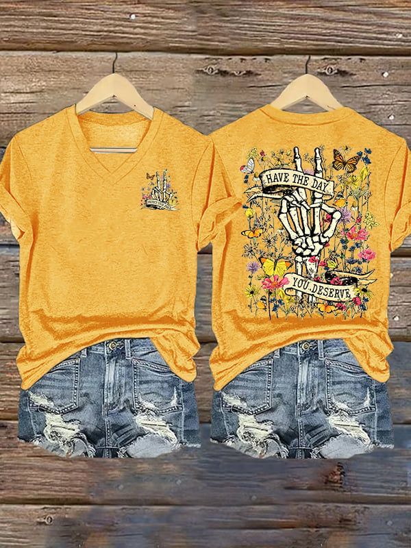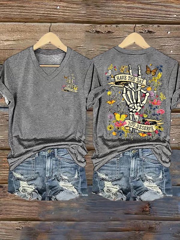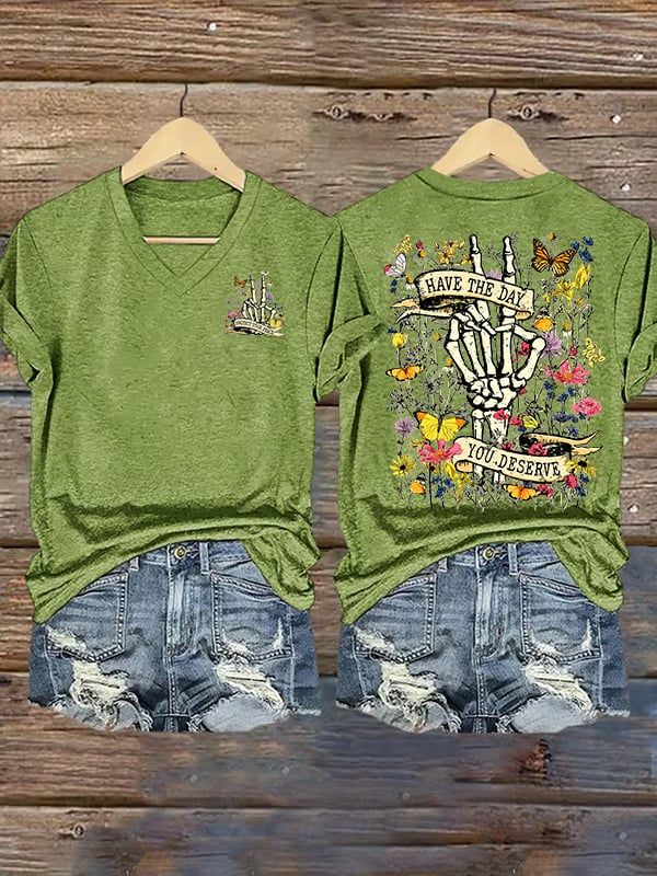 V-Neck Retro Funny We Simply Do Not Care Menopause Perimenopause Print T-Shirt