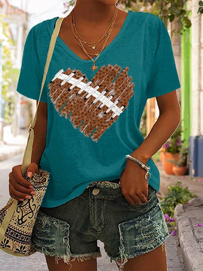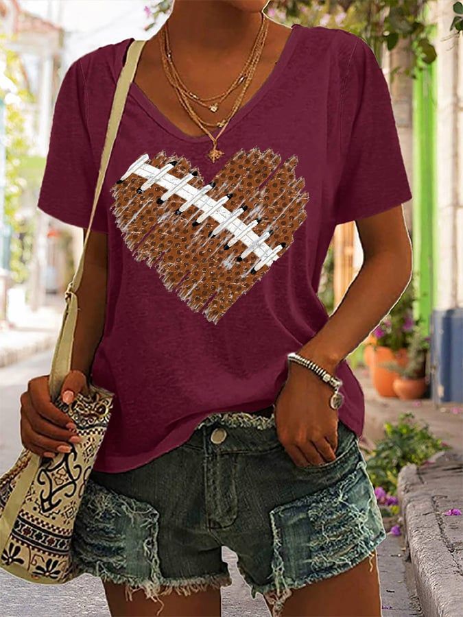 Women's Football Print Waffle Long Sleeve T-Shirt