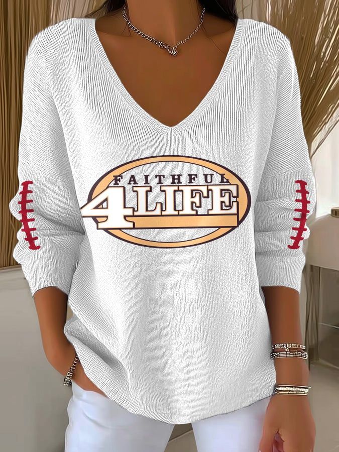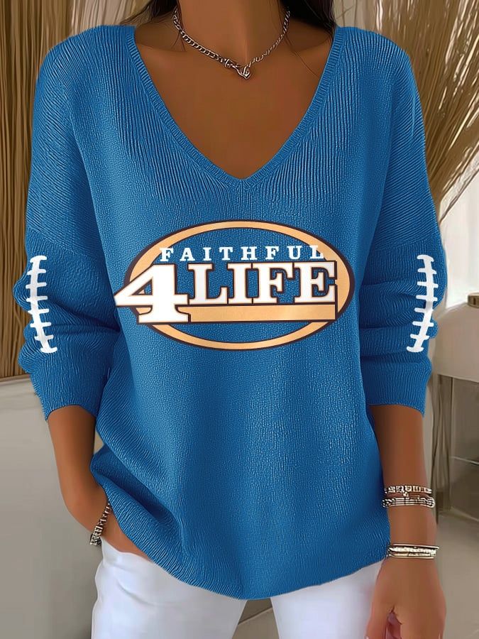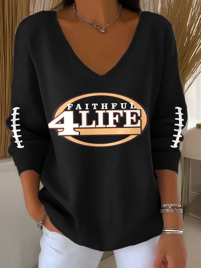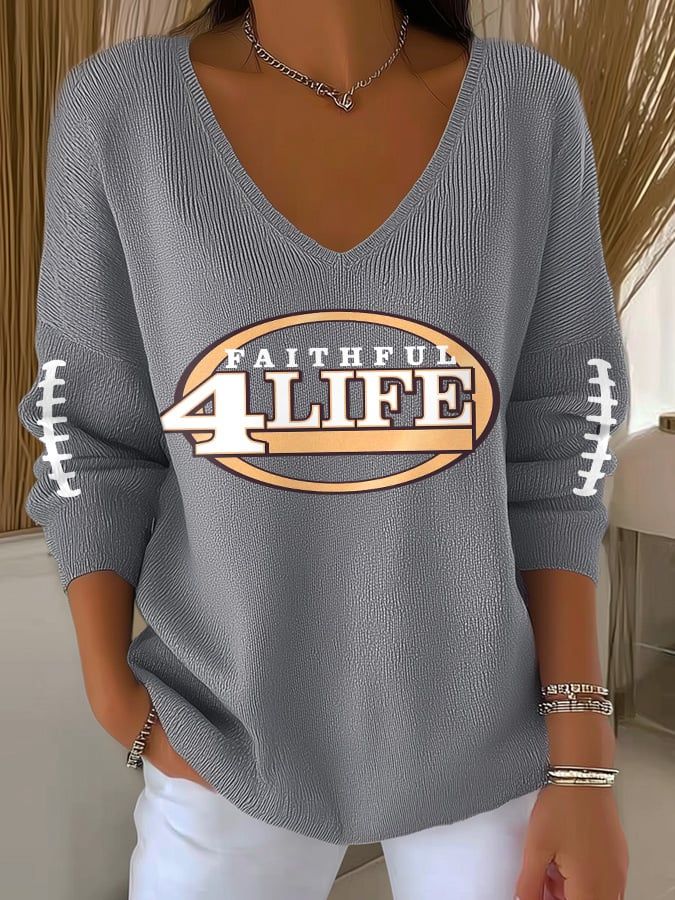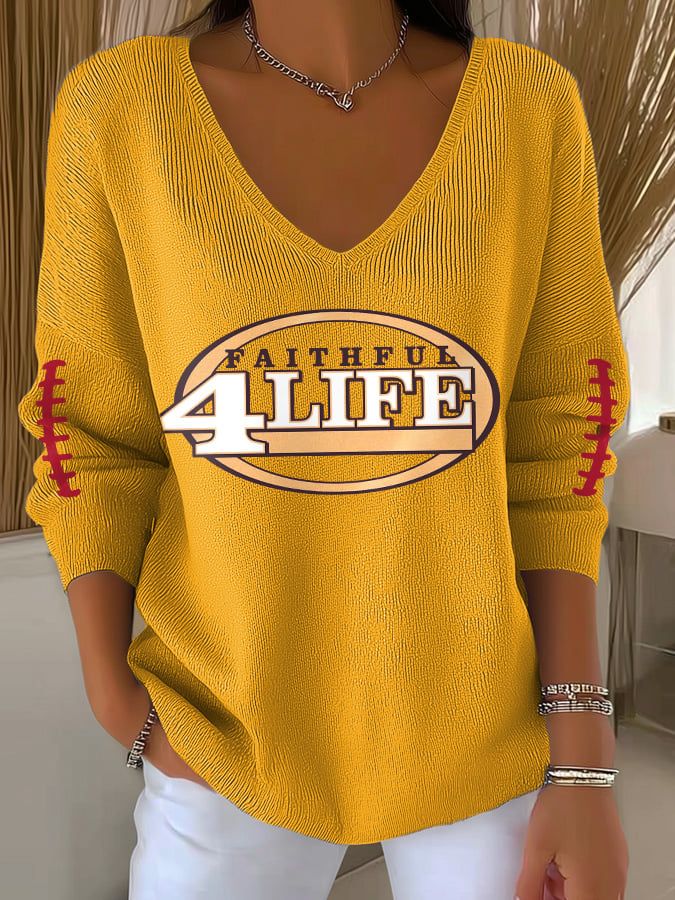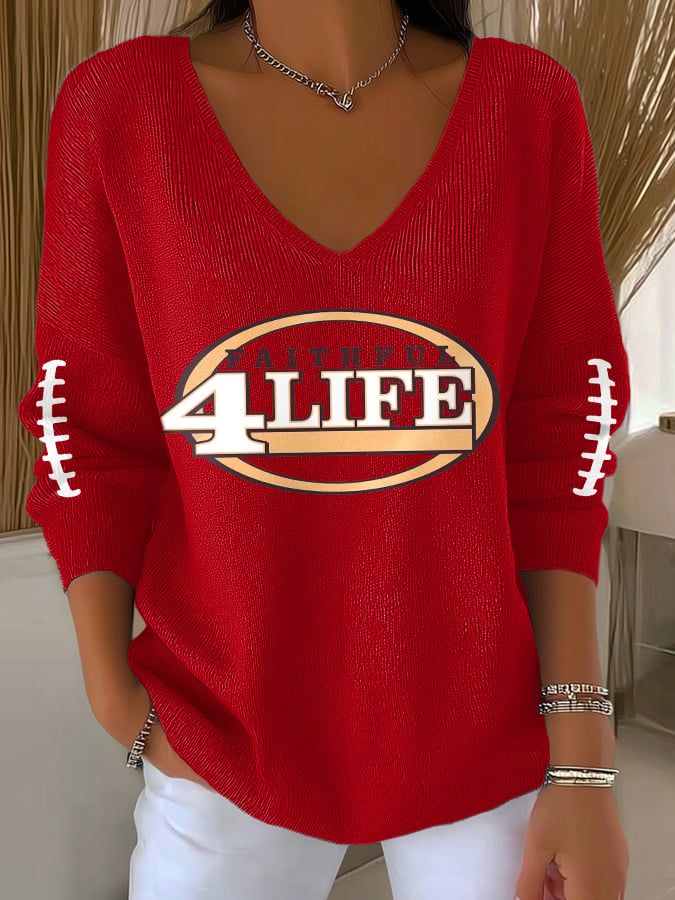 Women's Football Print V-Neck Casual Knitted Sweater