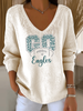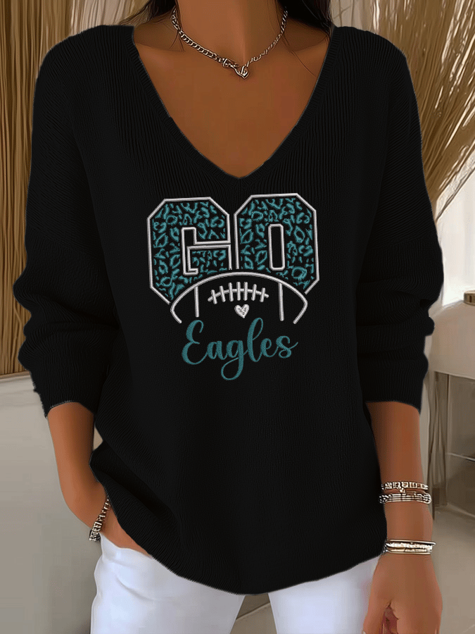 Women's Football Print Waffle Long Sleeve T-Shirt