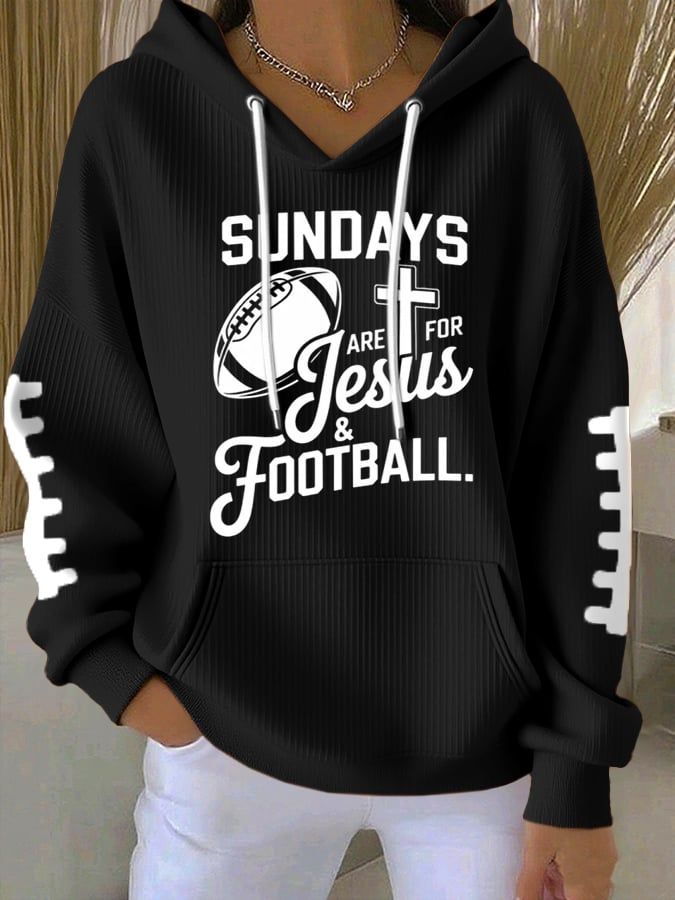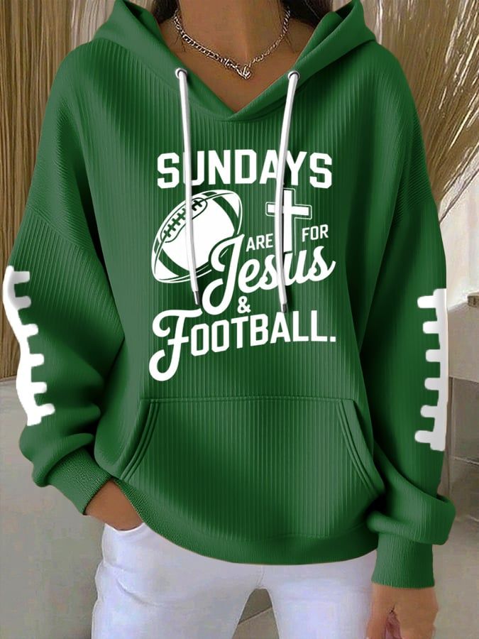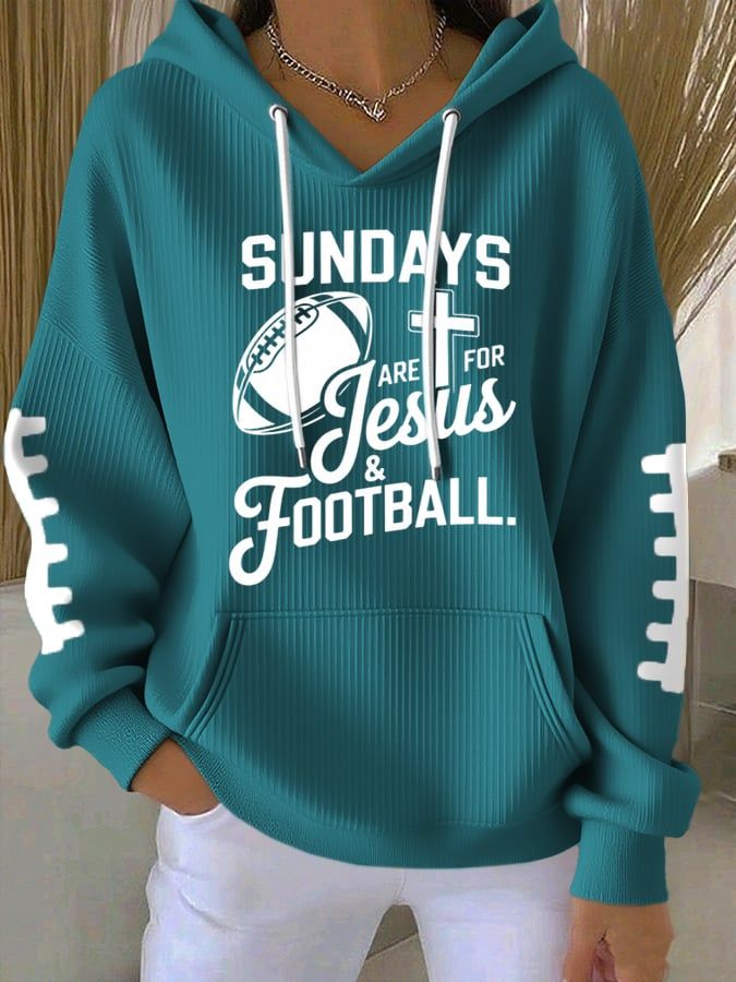 Women's Football Print Waffle Long Sleeve T-Shirt
