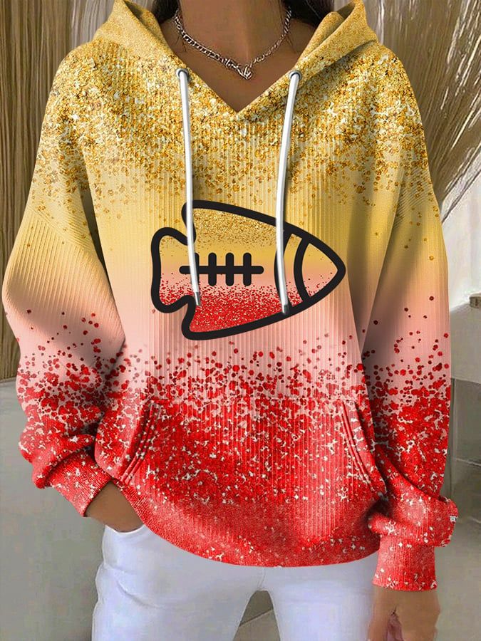 Women's Football Print Casual Hoodie