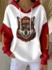 Women's rugby-style hooded printed casual sweatshirt