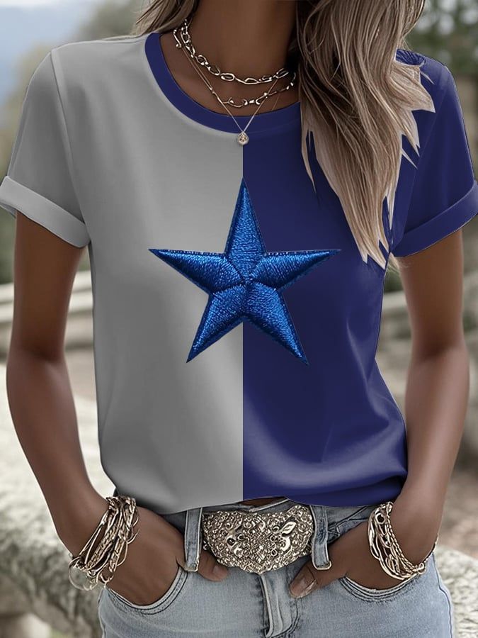 Rugby team color casual Women's Football Print V Neck T-shirt