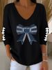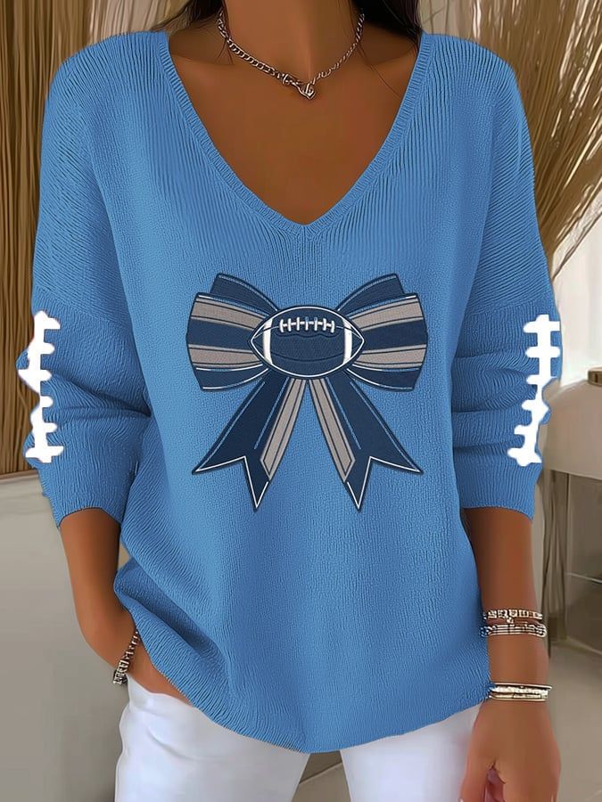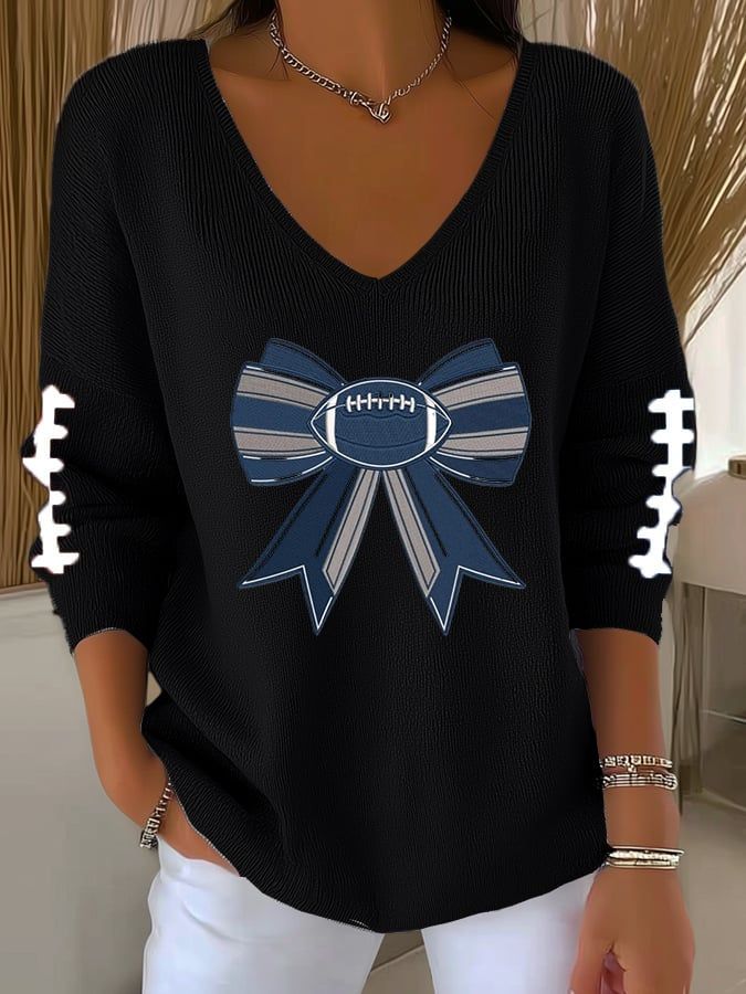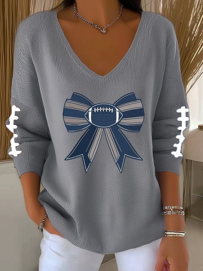Women's Football Print V Neck T-shirt