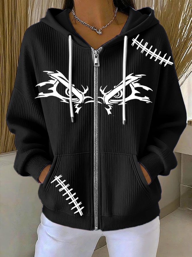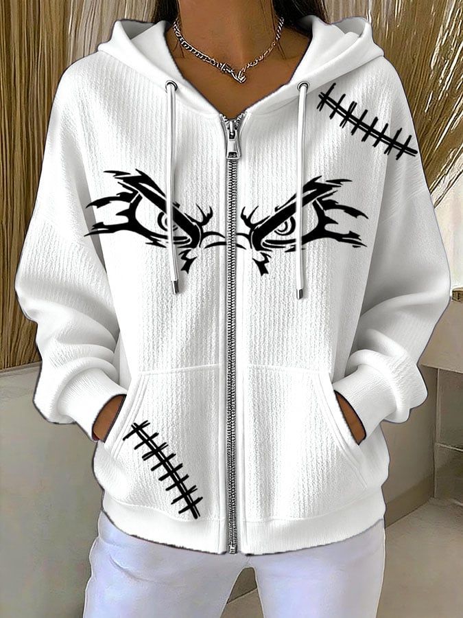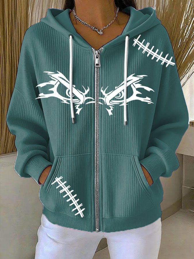 Women's Football Print Waffle Long Sleeve T-Shirt