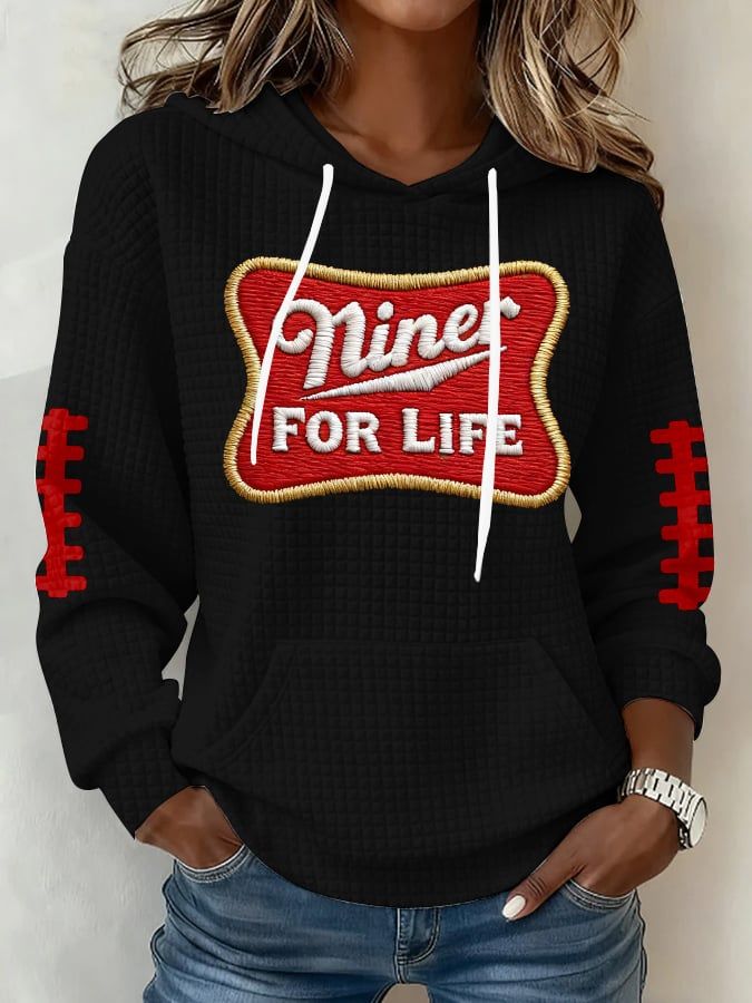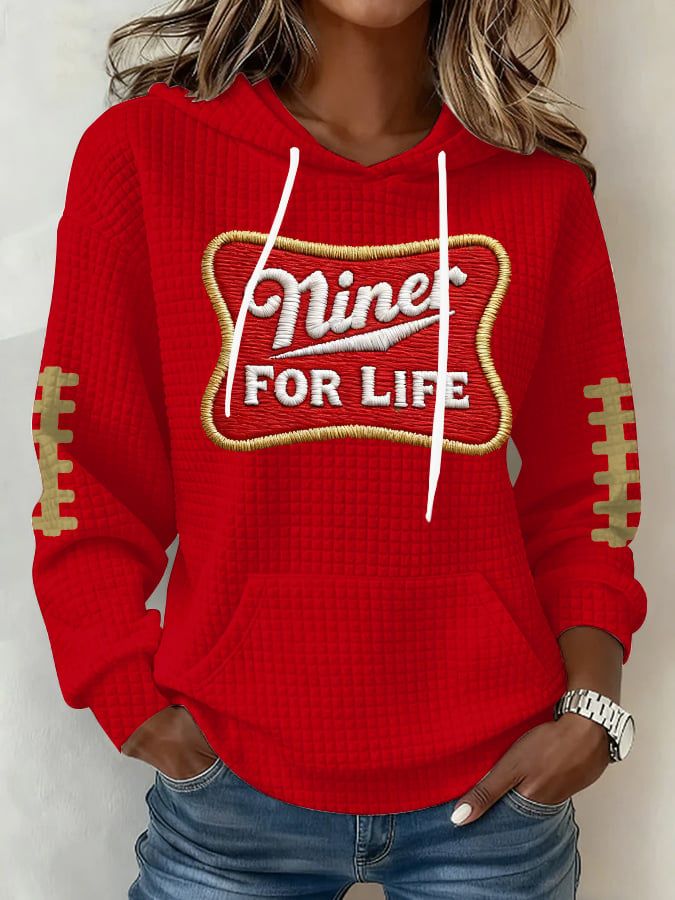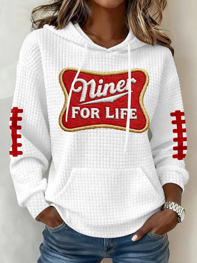 Women's Football Print Waffle Long Sleeve T-Shirt