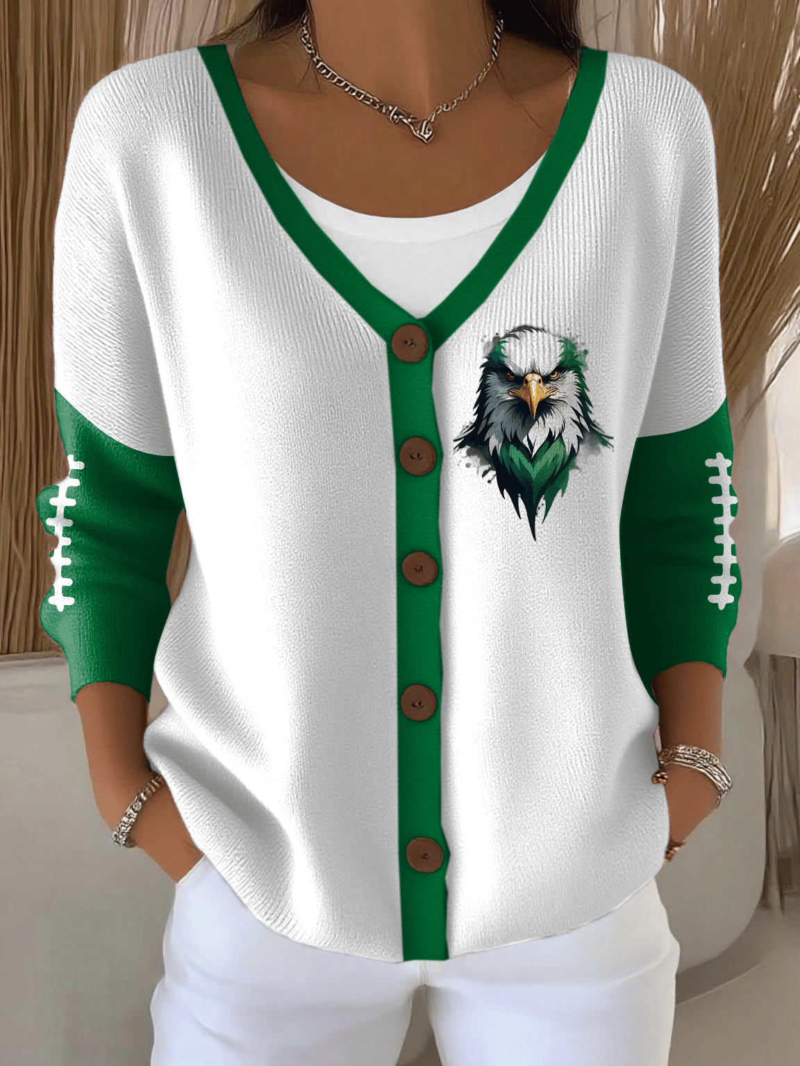 Women's Football Print Knit Cardigan