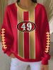 Women's Football Print Knit Crew Neck Long Sleeve Top