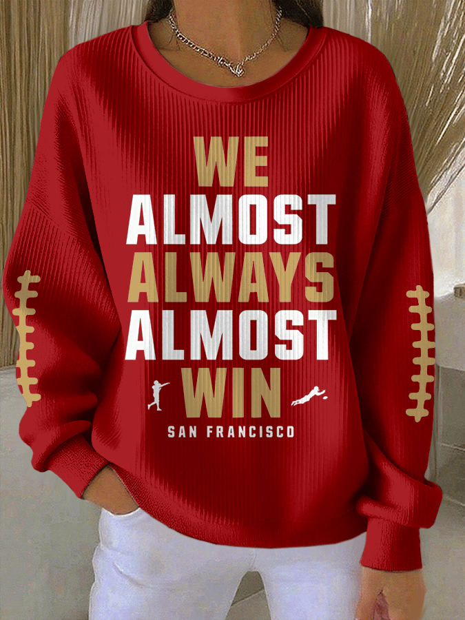 Women's Football Print Knit Crew Neck Long Sleeve Top