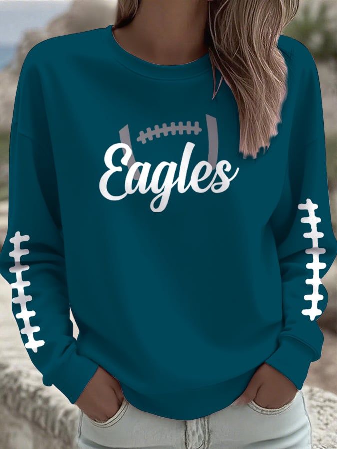 Women's Football Print Waffle Long Sleeve T-Shirt