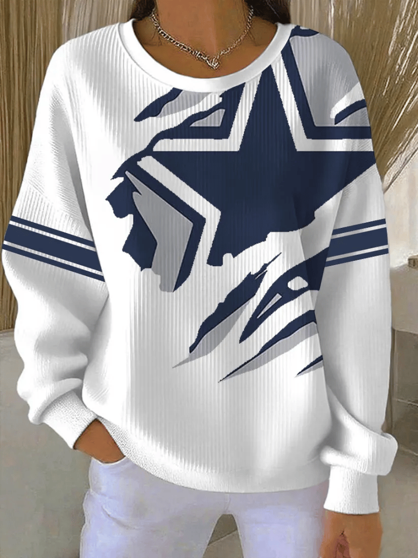 Women's Football Print Waffle Long Sleeve T-Shirt