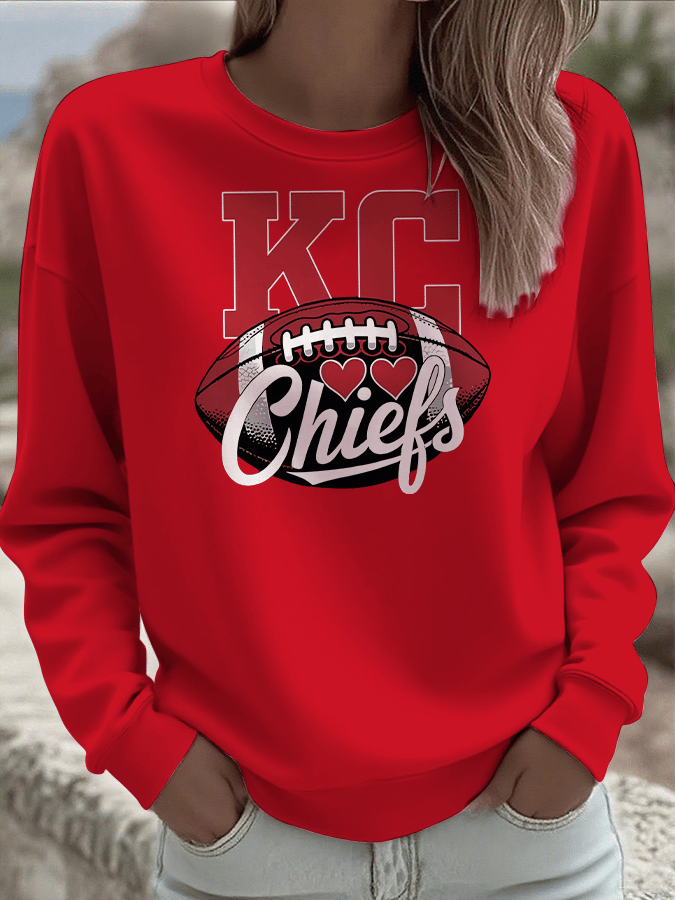 Women's Football Print Round Neck Sweatshirt