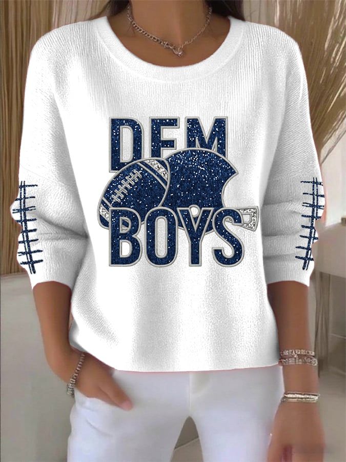 Women's Football Print Waffle Long Sleeve T-Shirt