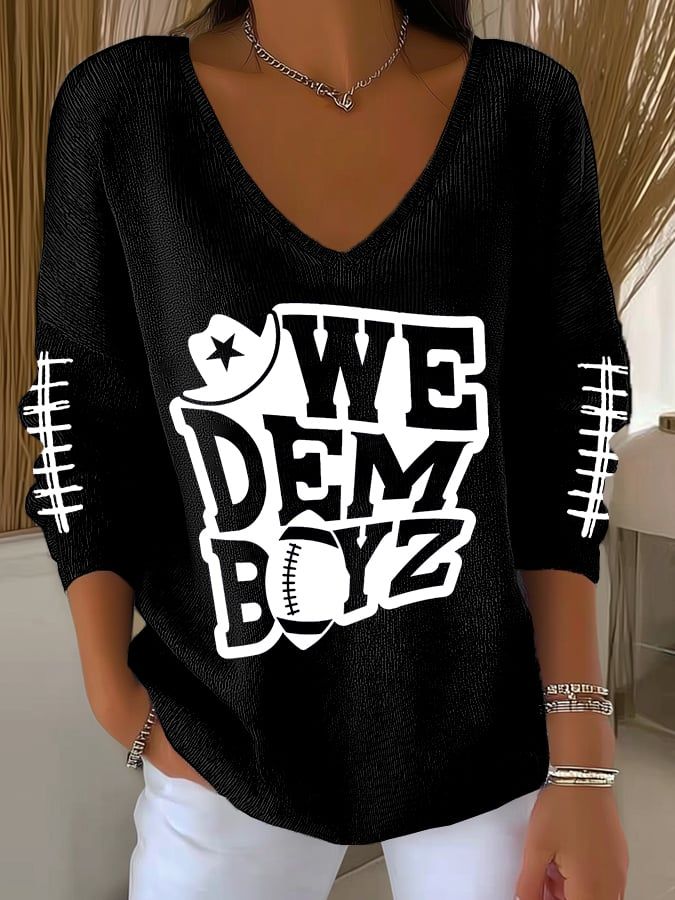 Women's Football Print V Neck T-shirt
