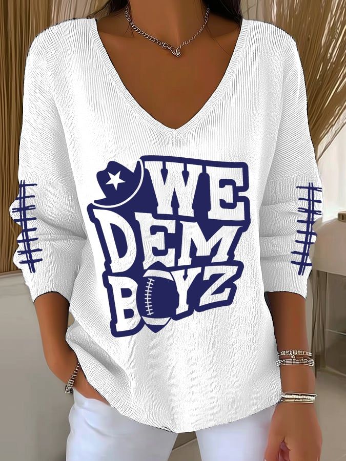 Women's Football Print V Neck Sweater