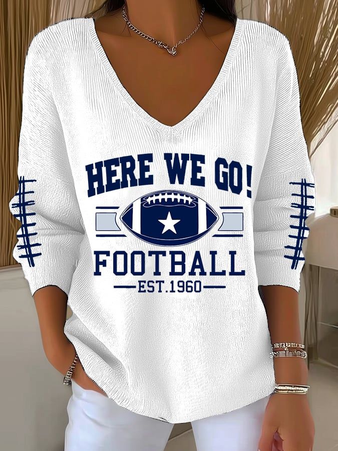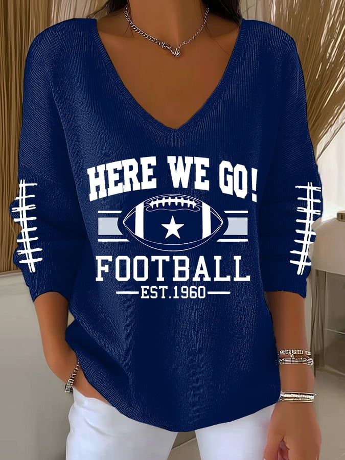 Women's Football Print V Neck Sweater