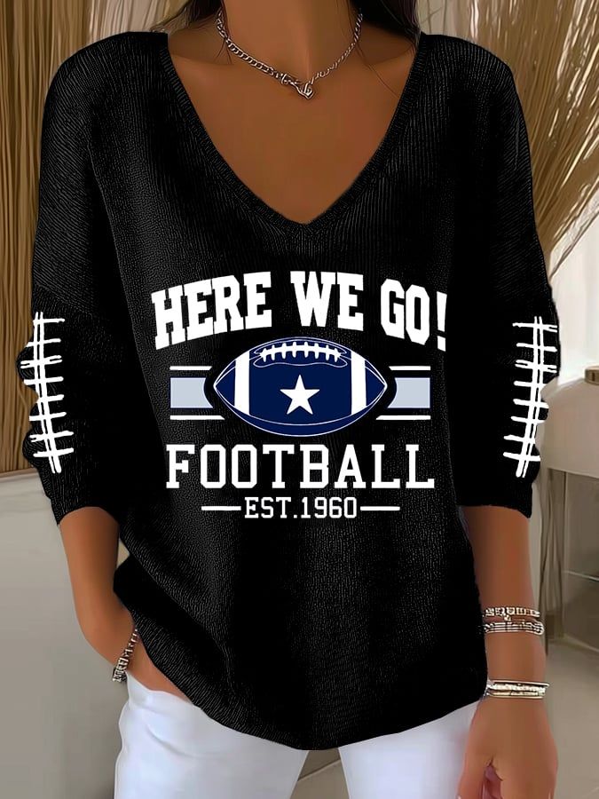 Women's Football Print V Neck T-shirt