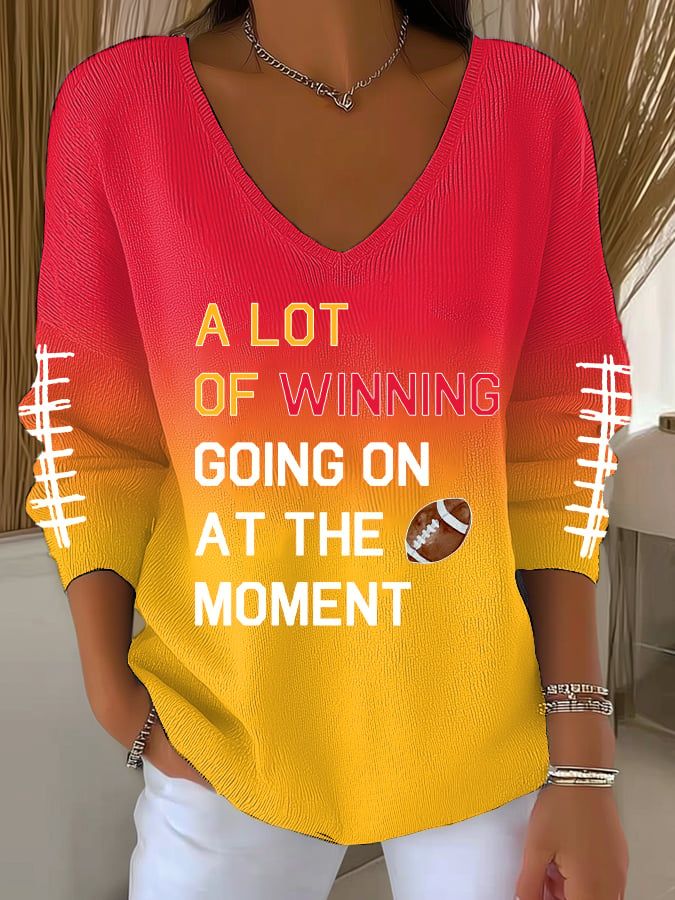 Women's Football Print Waffle Long Sleeve T-Shirt