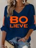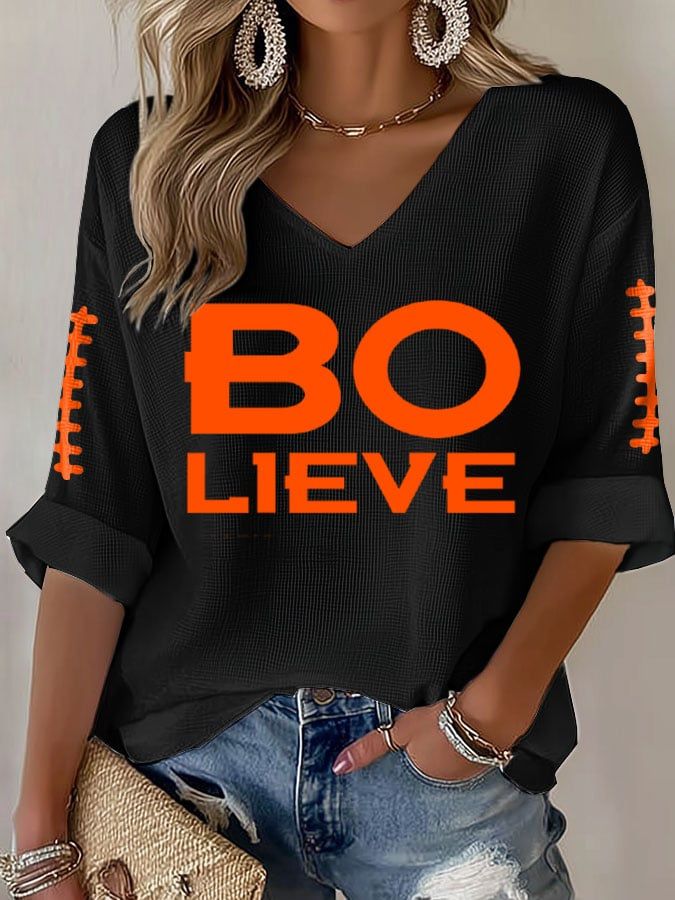 Rugby team color casual Women's Football Print V Neck T-shirt