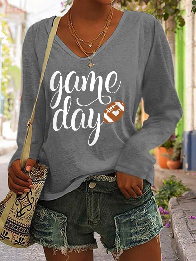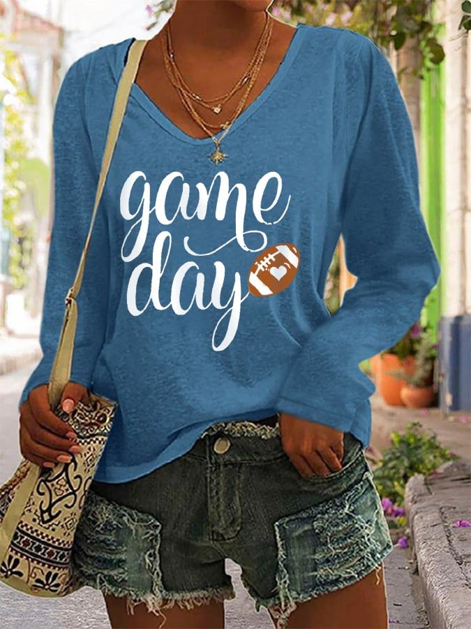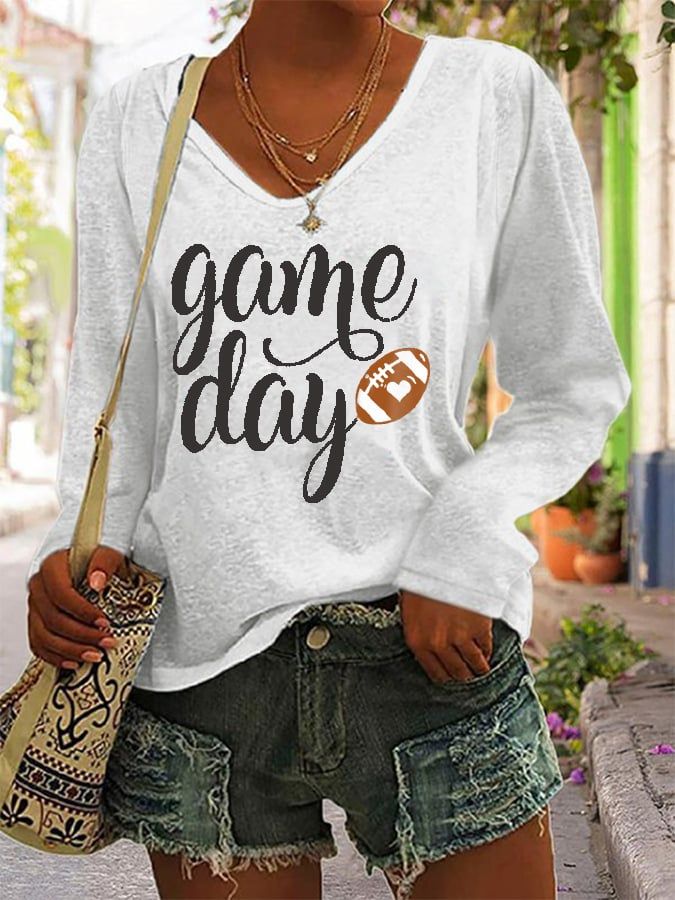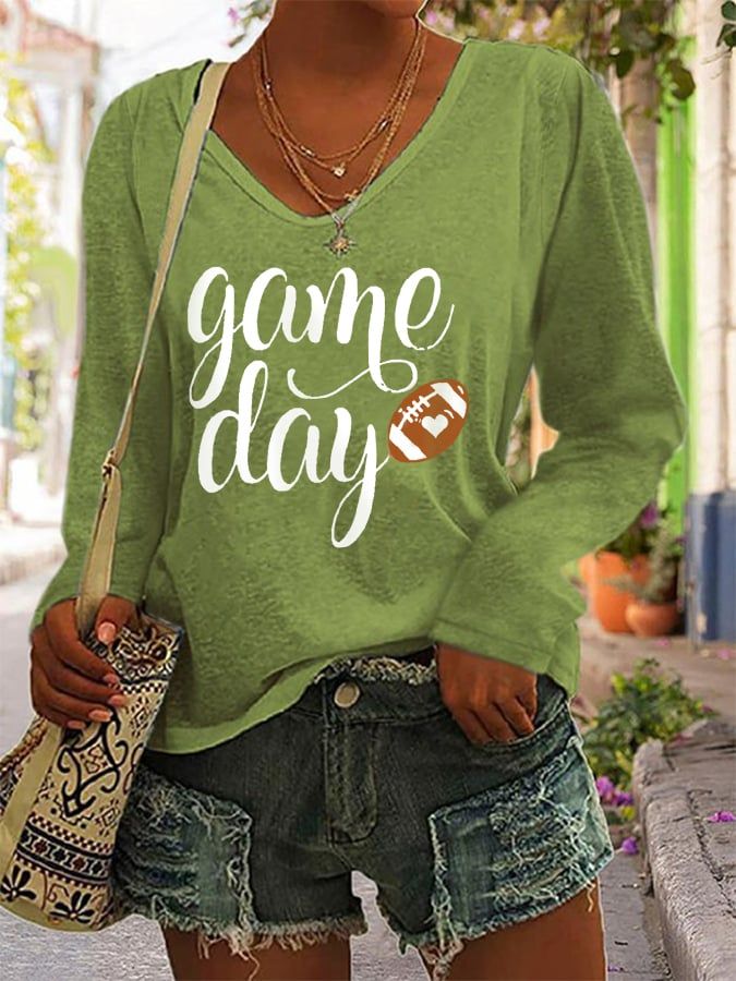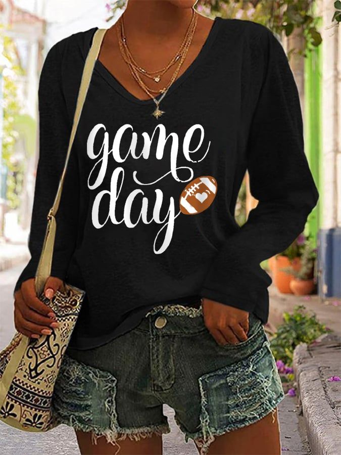 Women's Game Day Football Lover Casual Long-Sleeve T-Shirt