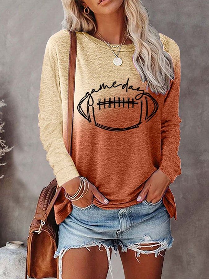 Women's Gameday Football Print Gradient Long Sleeve T-Shirt