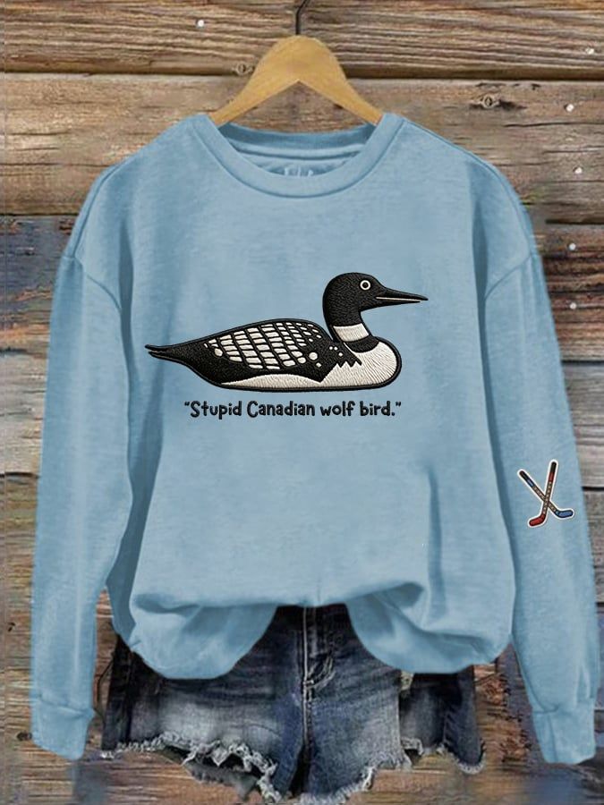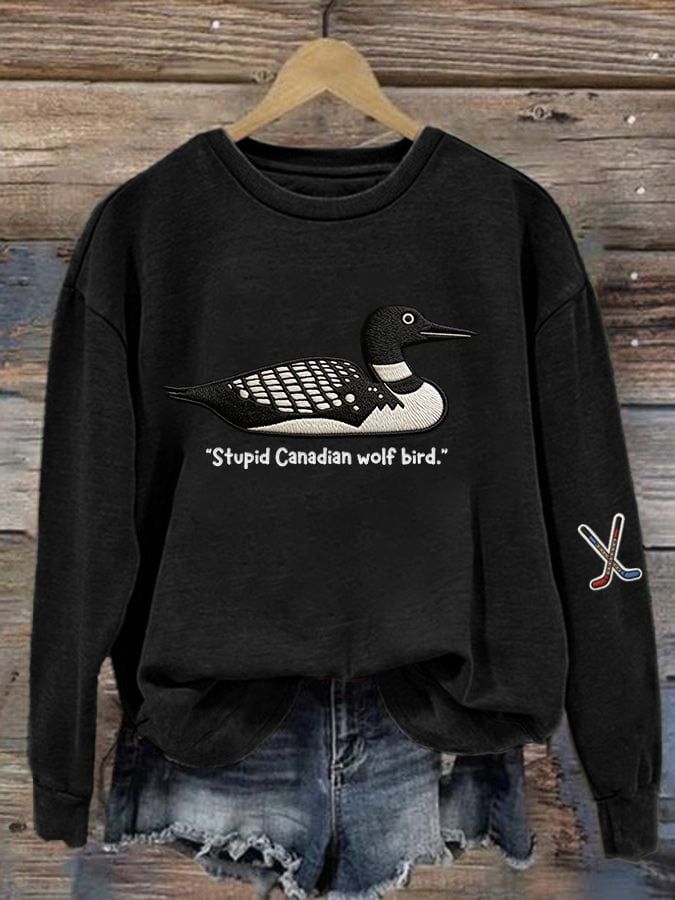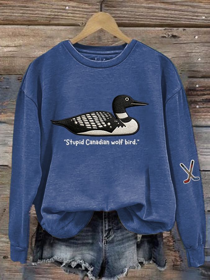 Men's Stupid Canadian wolf bird Print Long-Sleeved T-Shirt