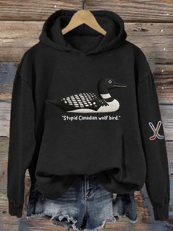 Men's Stupid Canadian wolf bird Print Long-Sleeved T-Shirt
