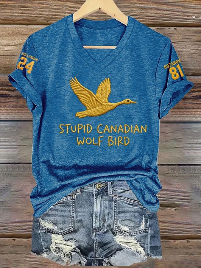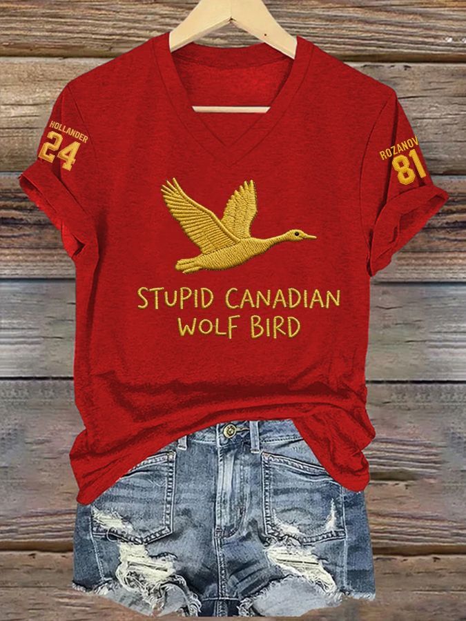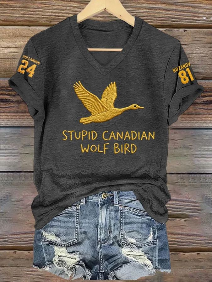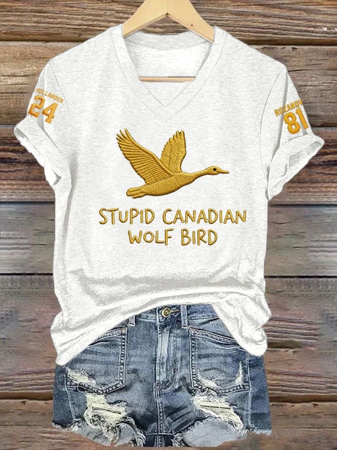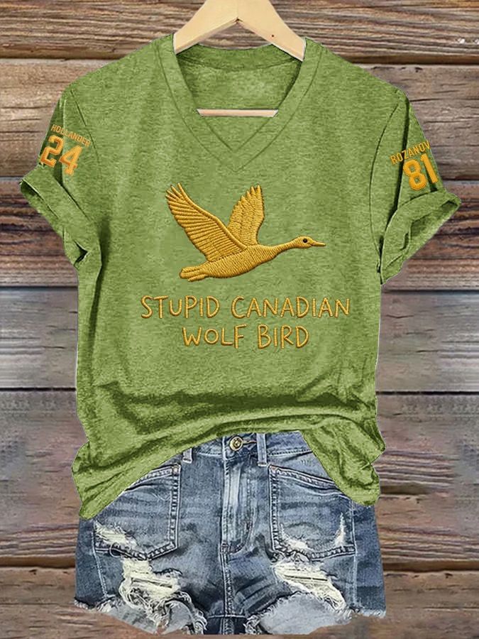 Men's Stupid Canadian Wolf Bird Print T-Shirt