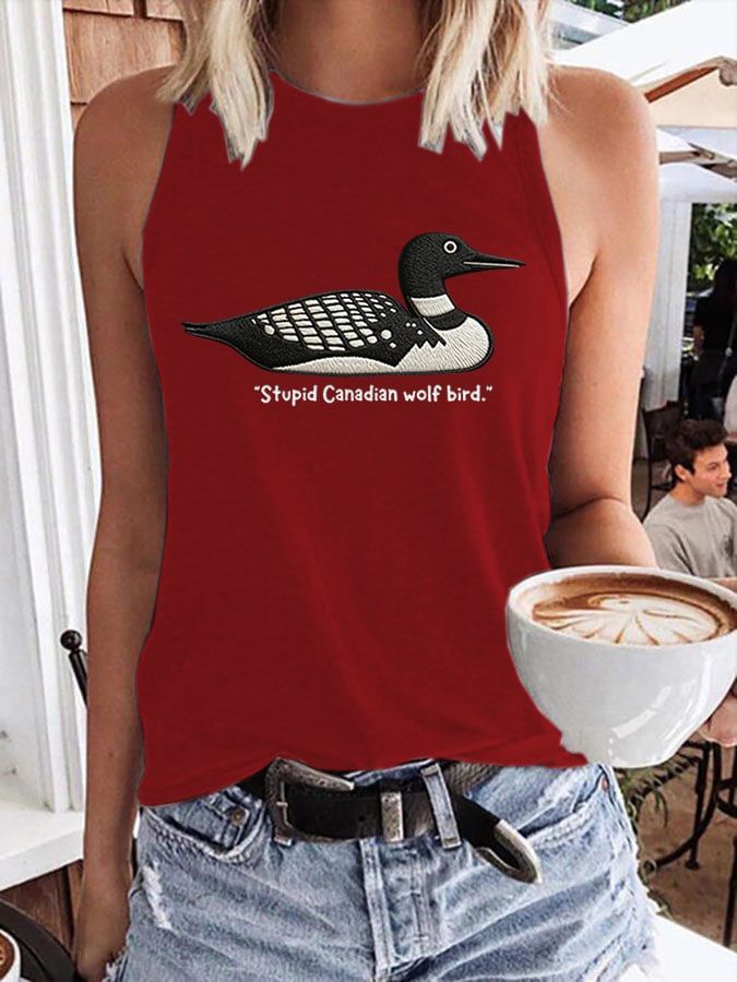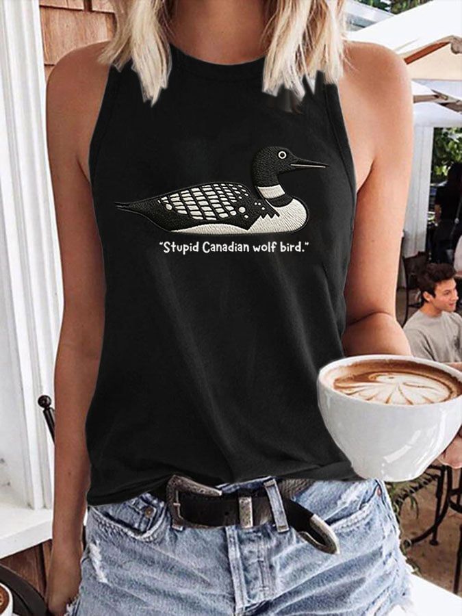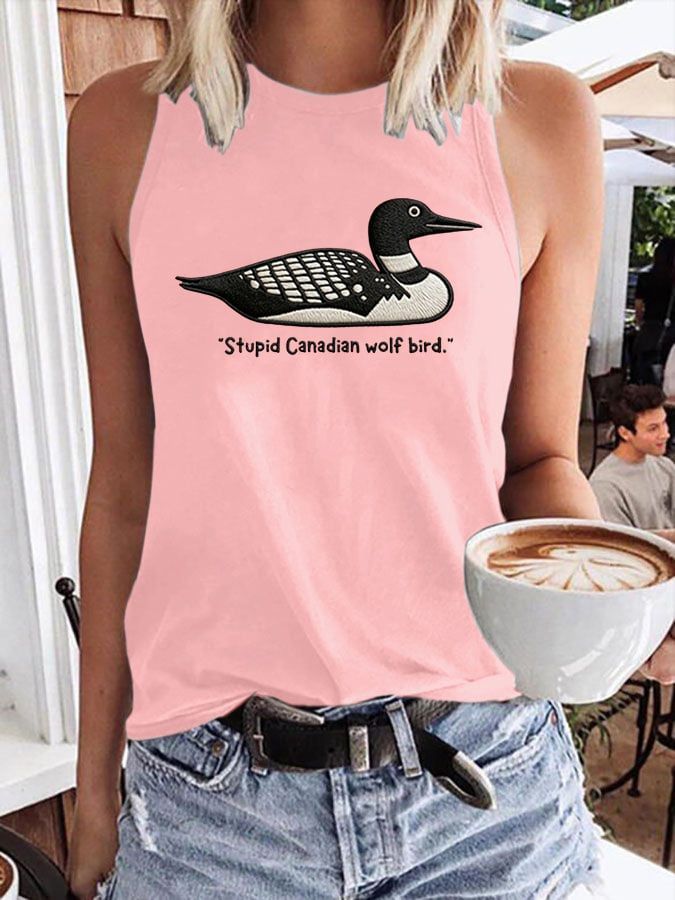 Men's Stupid Canadian Wolf Bird Print T-Shirt