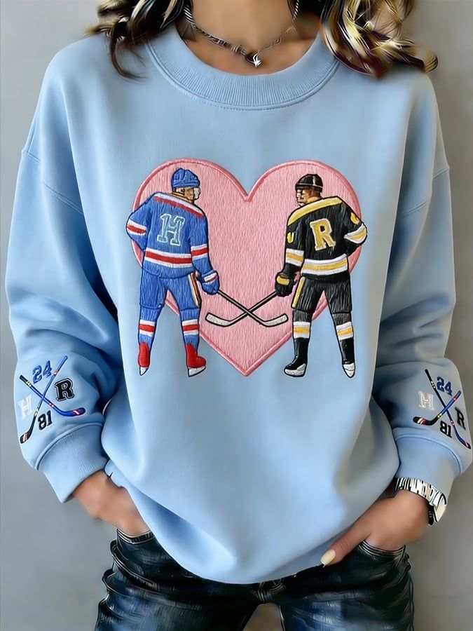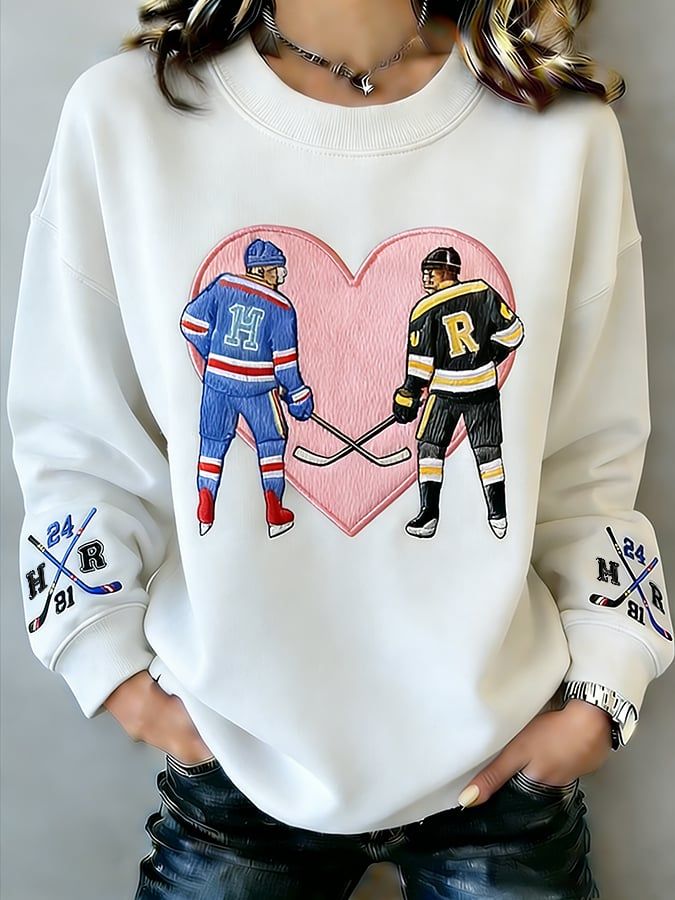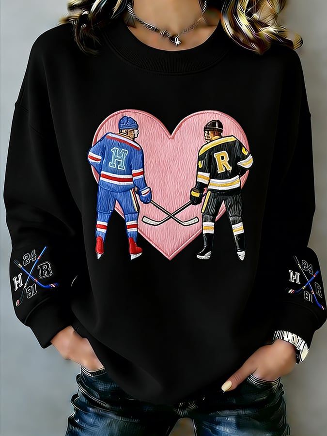 Women's Hockey Romance Print Long-Sleeved Sweatshirt
