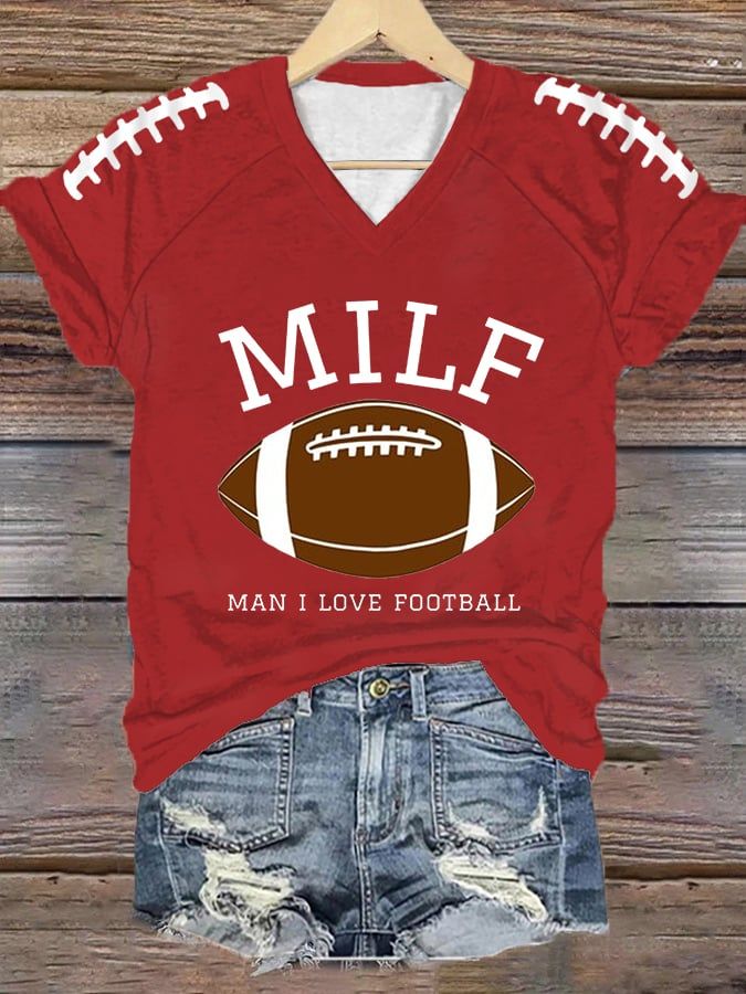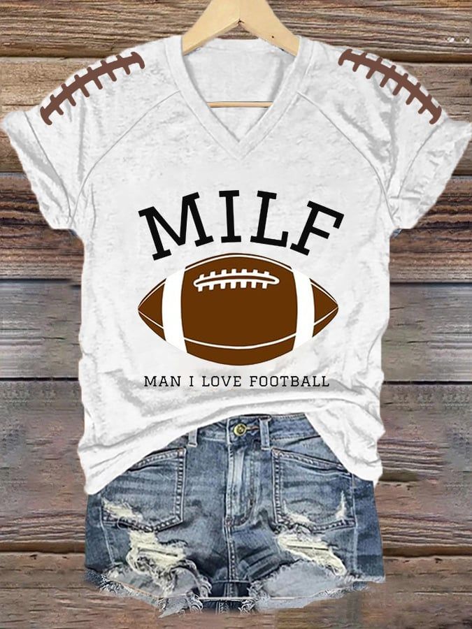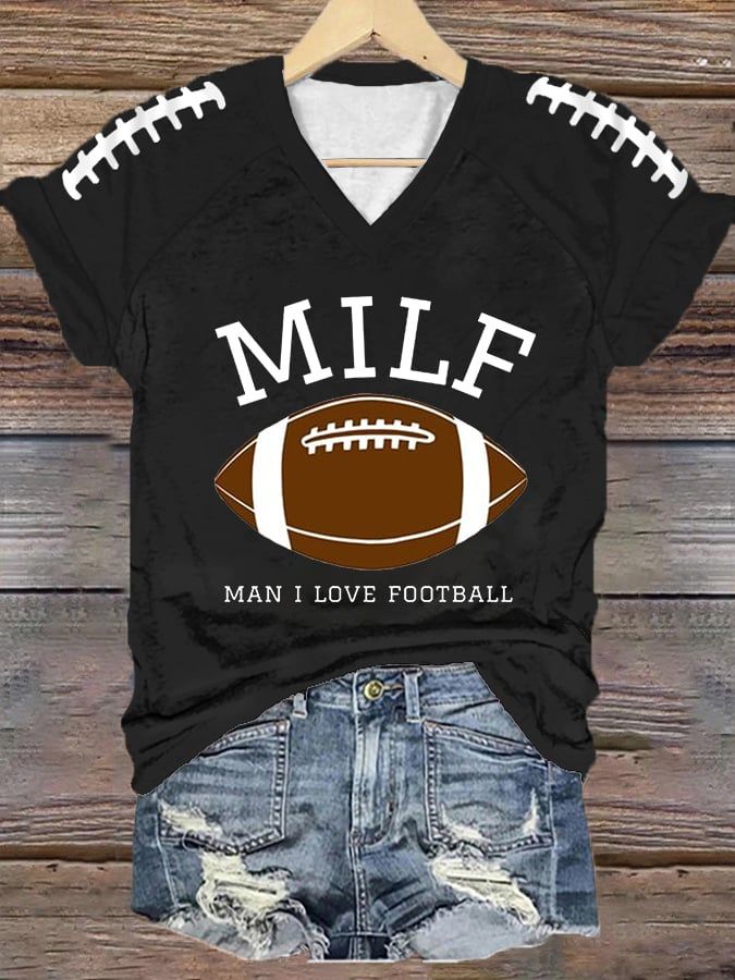 Women's MILF Man I Love Football Gameday Casual V-Neck Tee