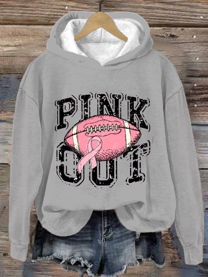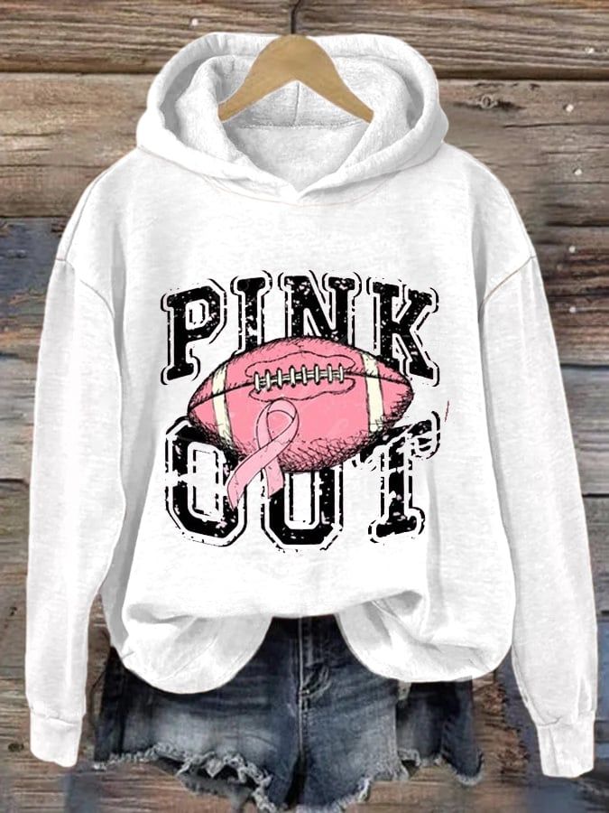 Women's Pink Out Breast Cancer Awareness Football Gameday Hoodie