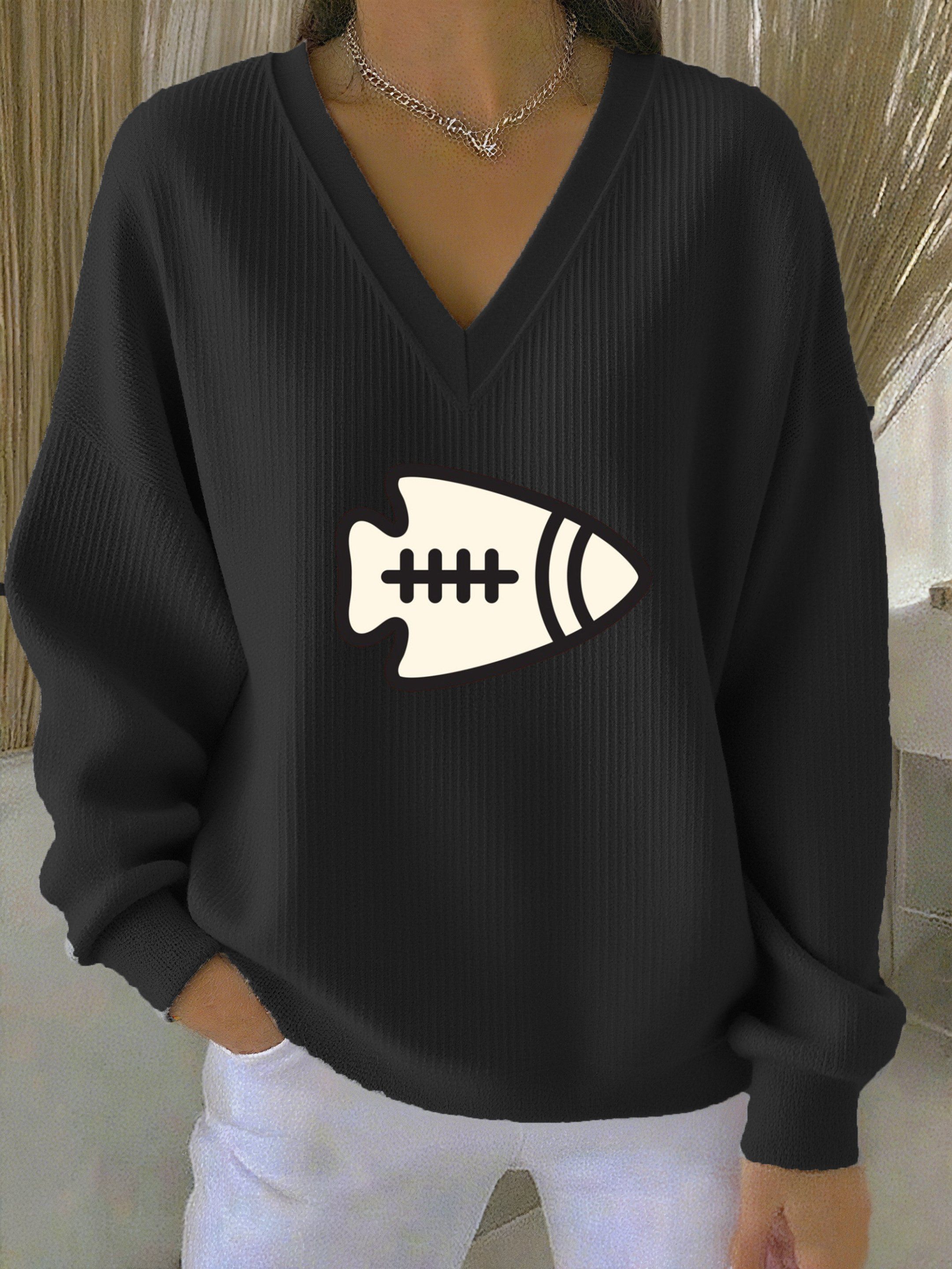 Women's Football Print Round Neck Sweatshirt