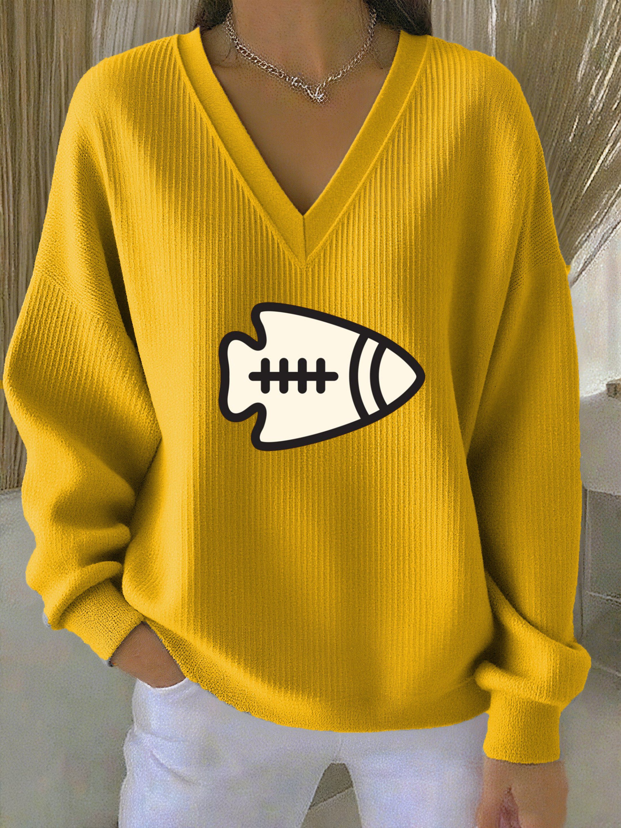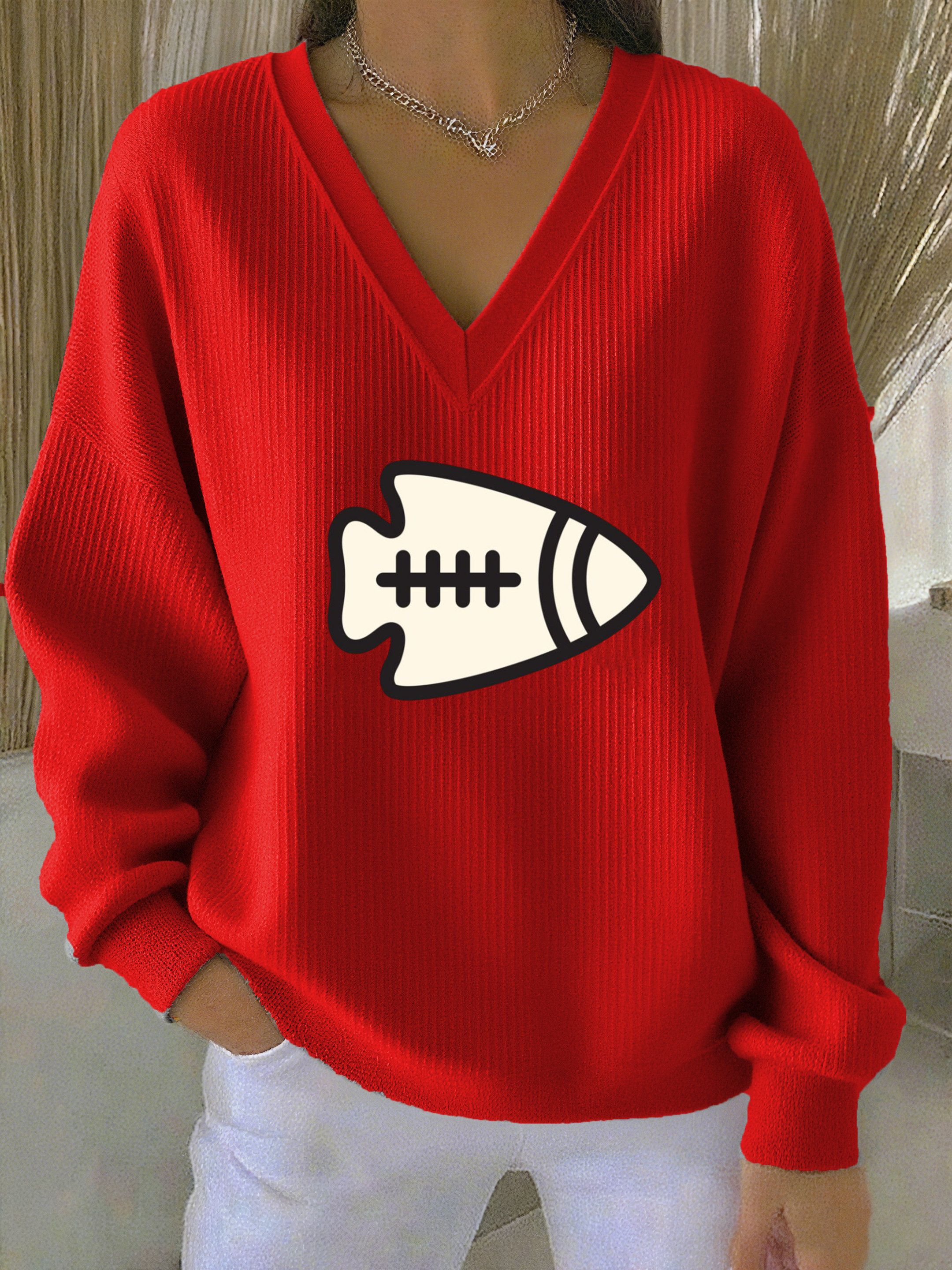 Rugby team color casual Women's Football Print V Neck T-shirt
