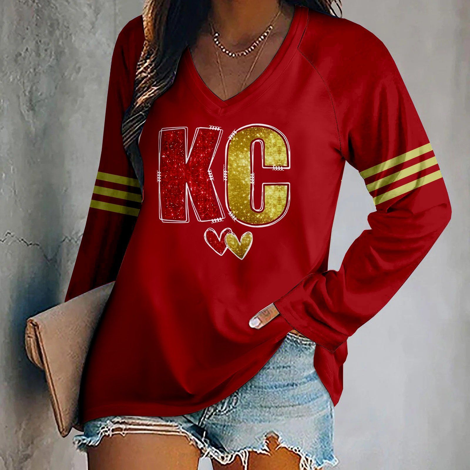 Rugby team color casual Women's Football Print V Neck T-shirt