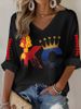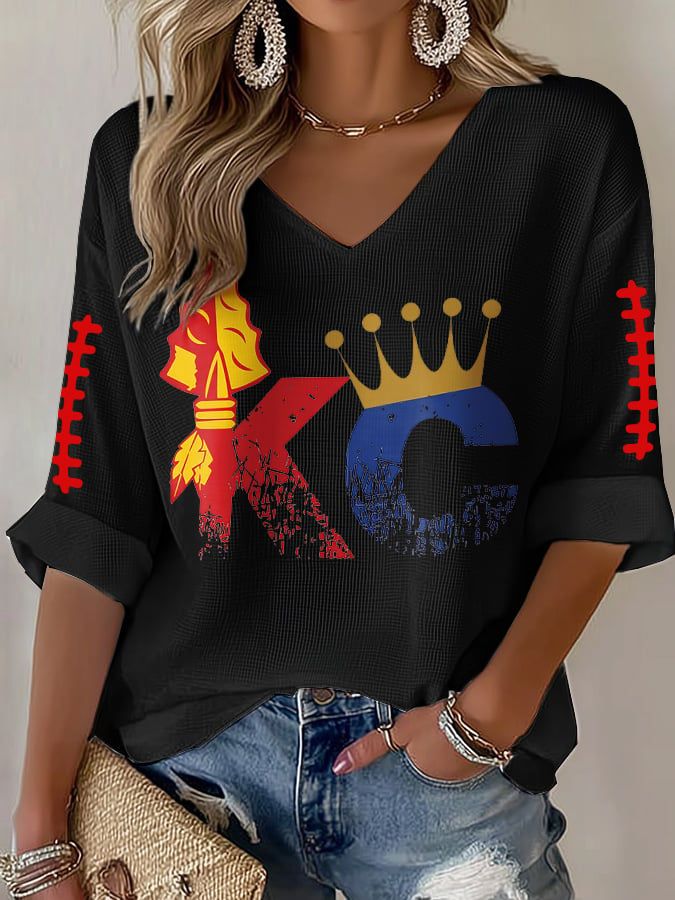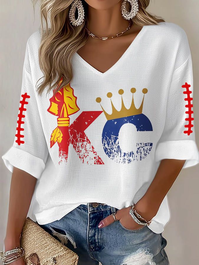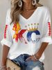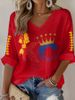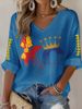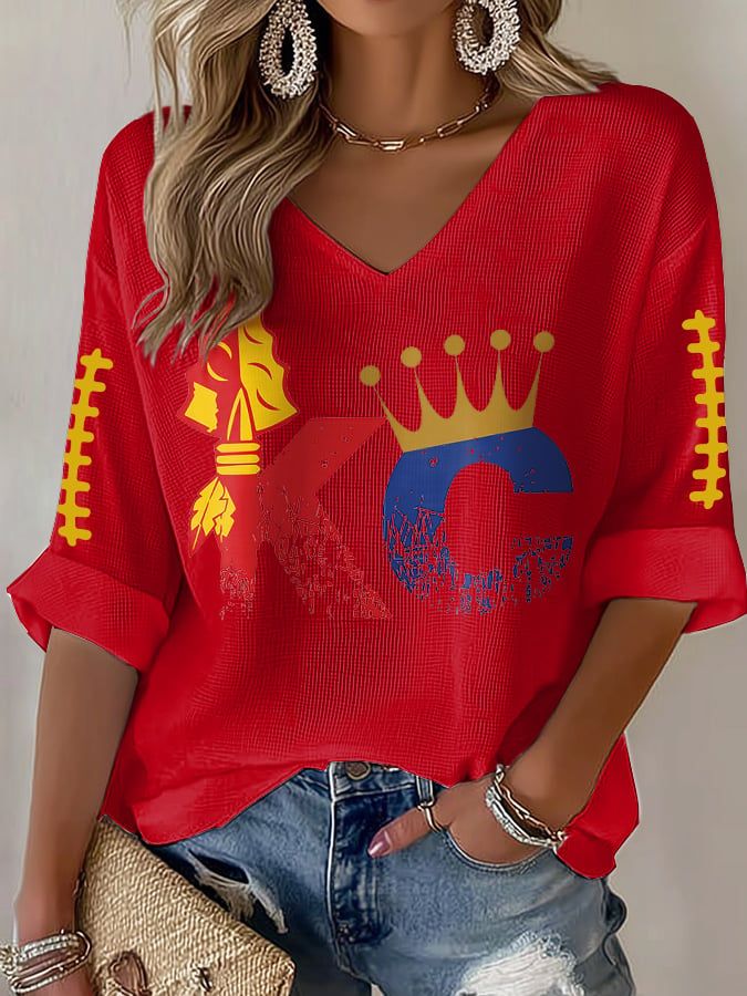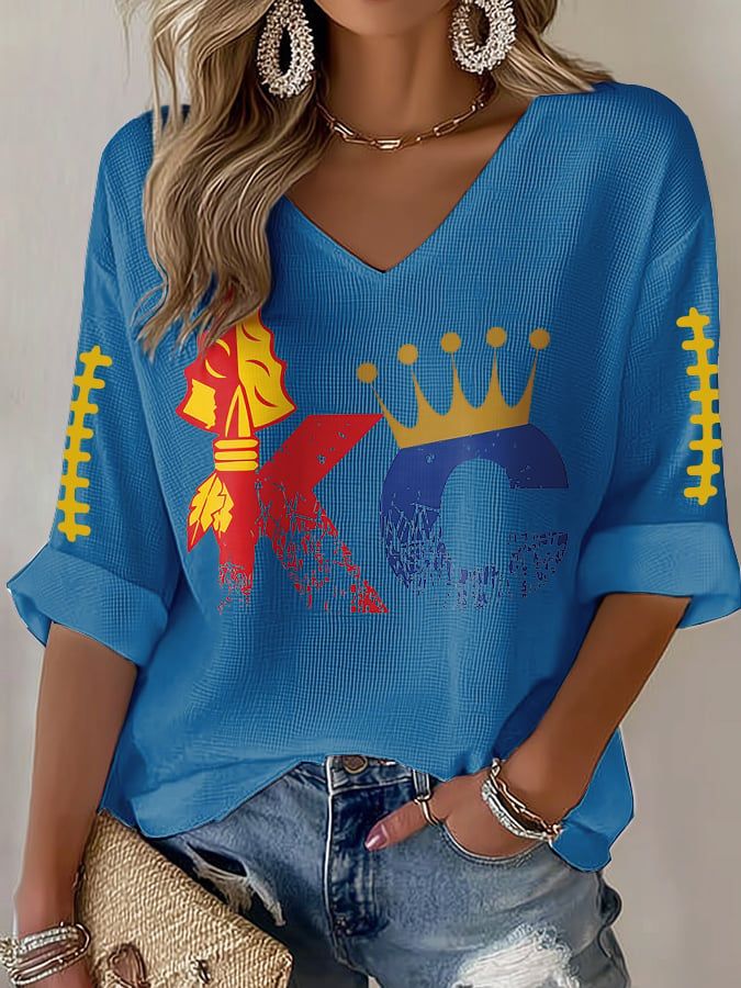 Rugby team color casual Women's Football Print V Neck T-shirt
