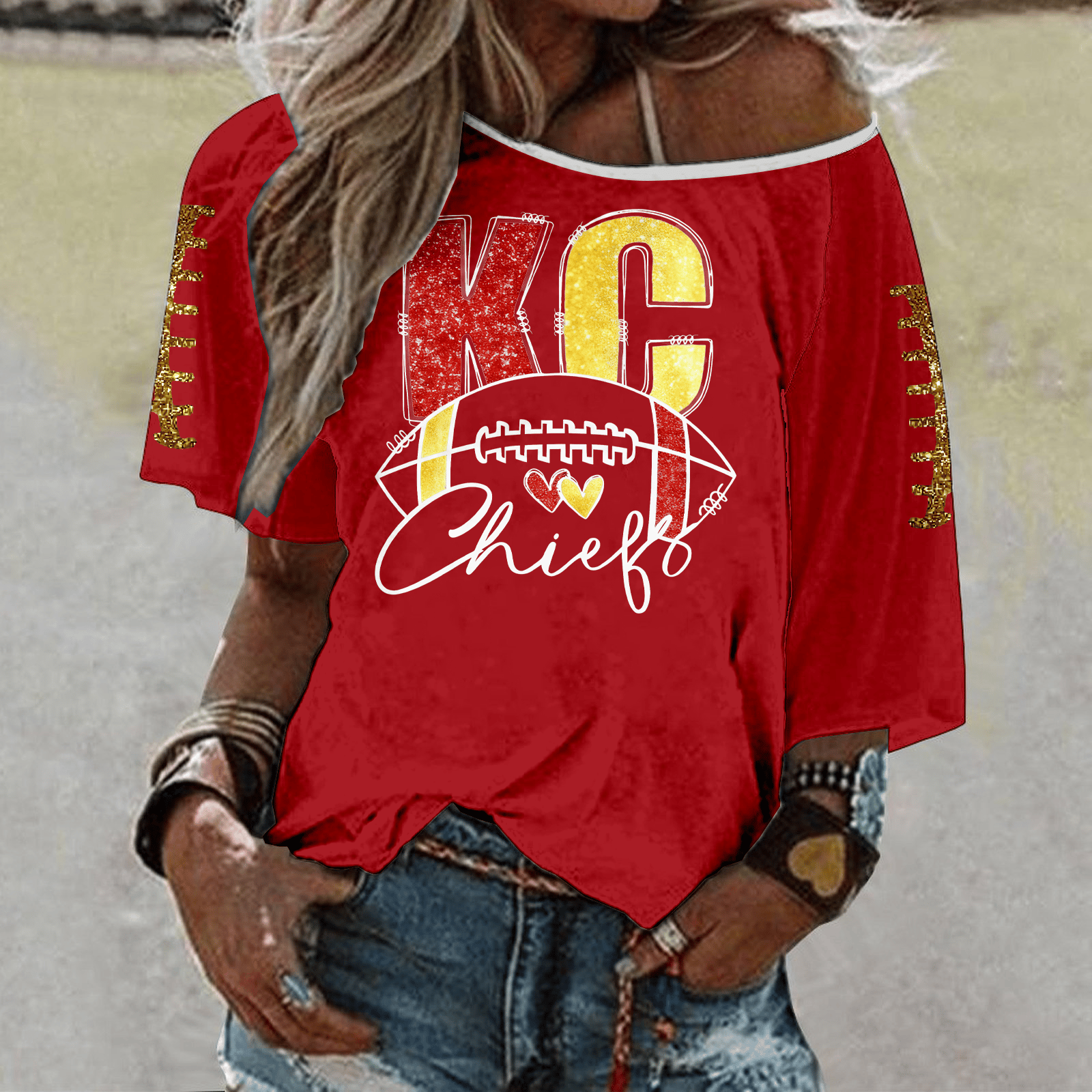 Rugby team color casual Women's Football Print V Neck T-shirt
