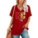 Rugby team color casual Women's Football Print V Neck T-shirt