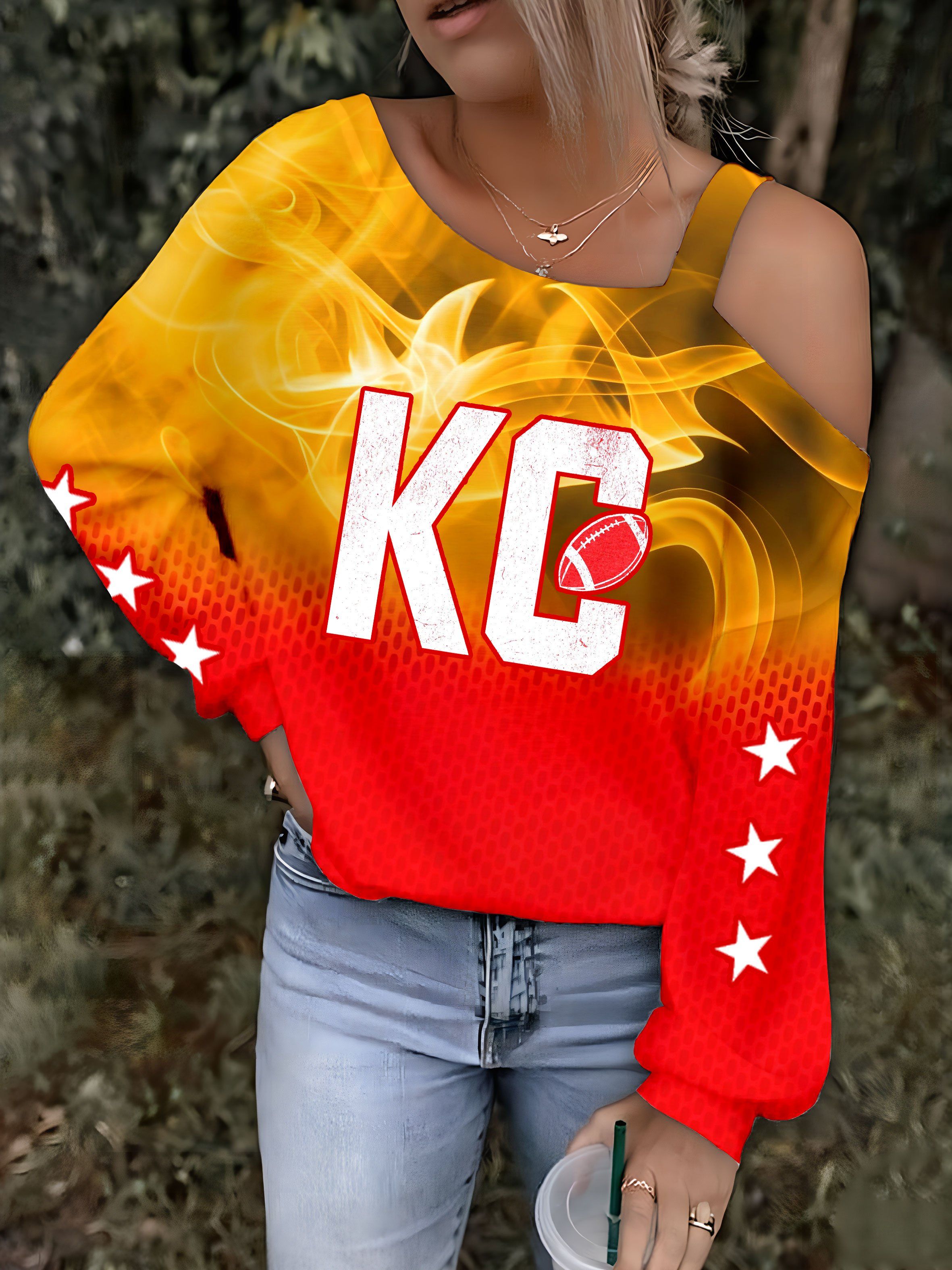 Women's Football Print Waffle Long Sleeve T-Shirt