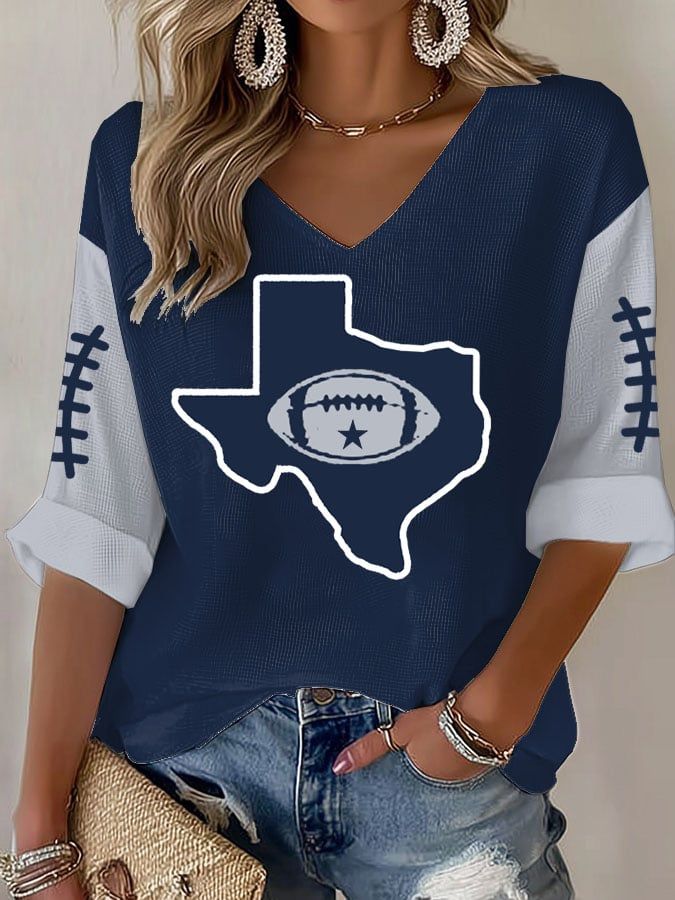 Women's Football Print V Neck T-shirt