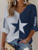 Rugby team color casual Women's Football Print V Neck T-shirt