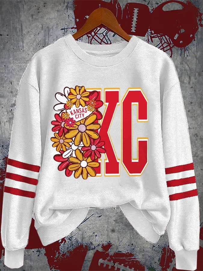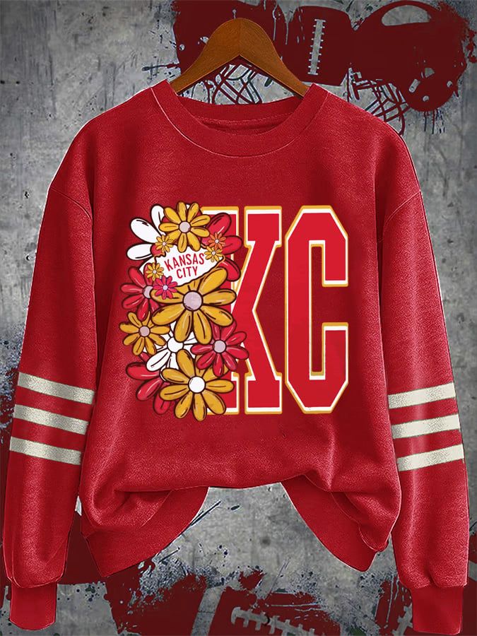 Women's Retro Floral Rugby Game Day Print Casual Sports Crew Neck Sweatshirt