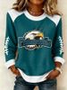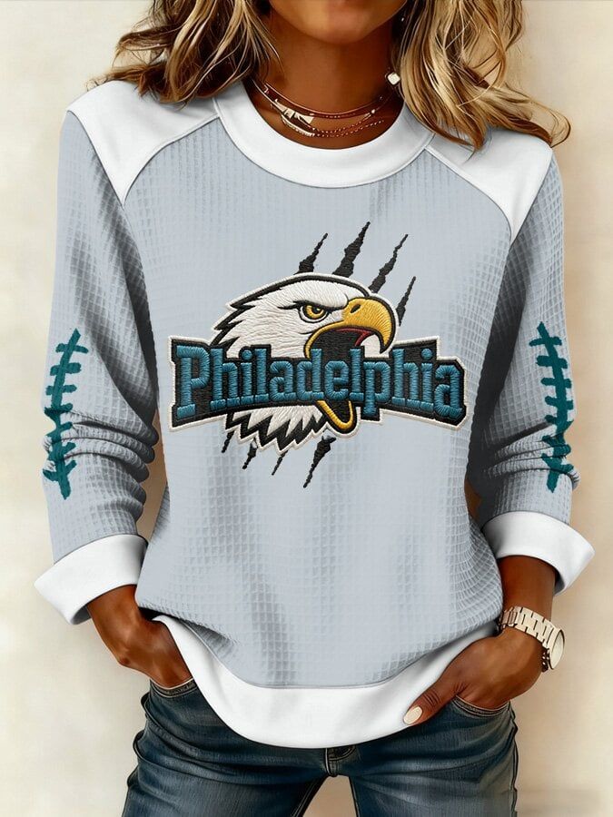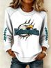 Women's Football Print Waffle Long Sleeve T-Shirt