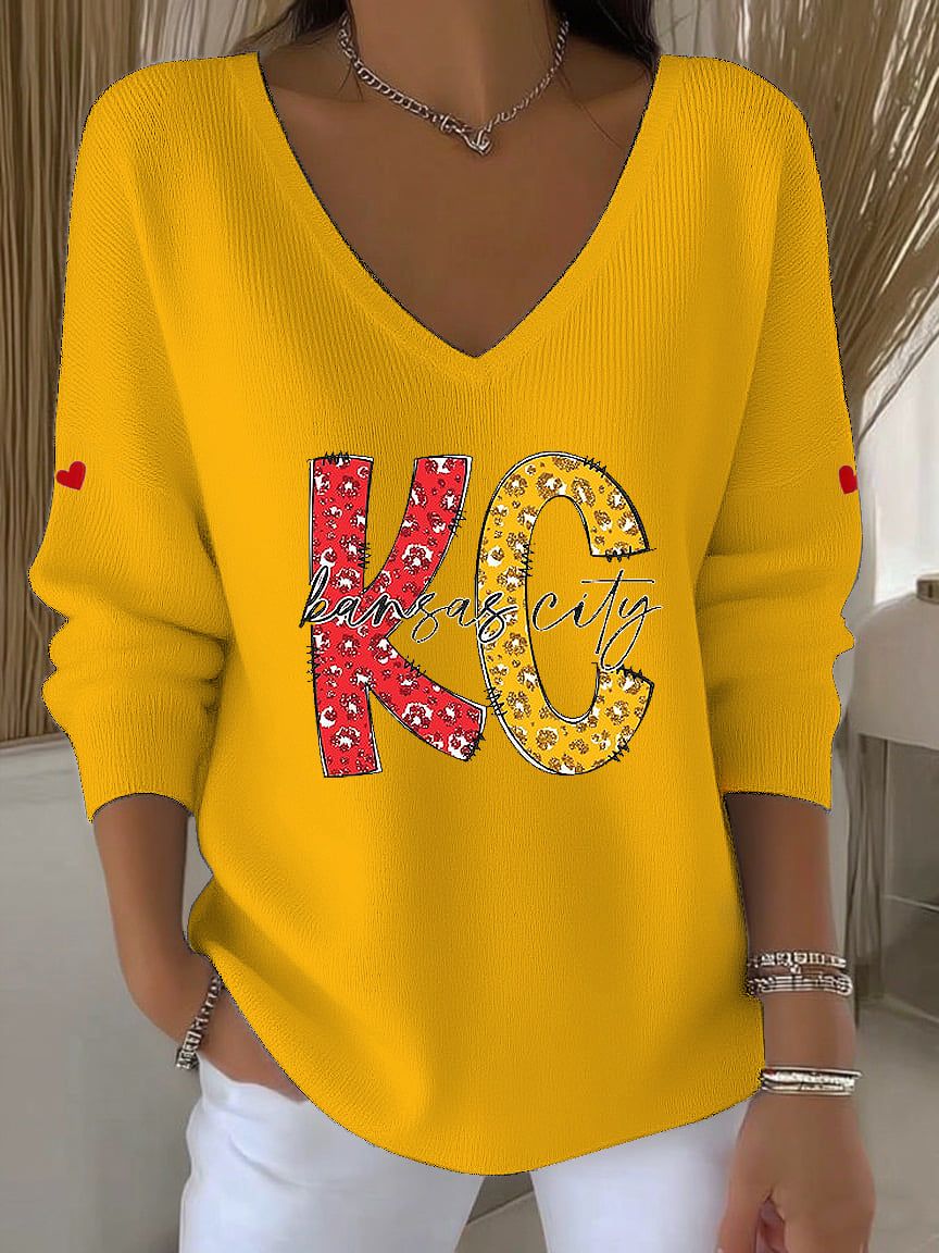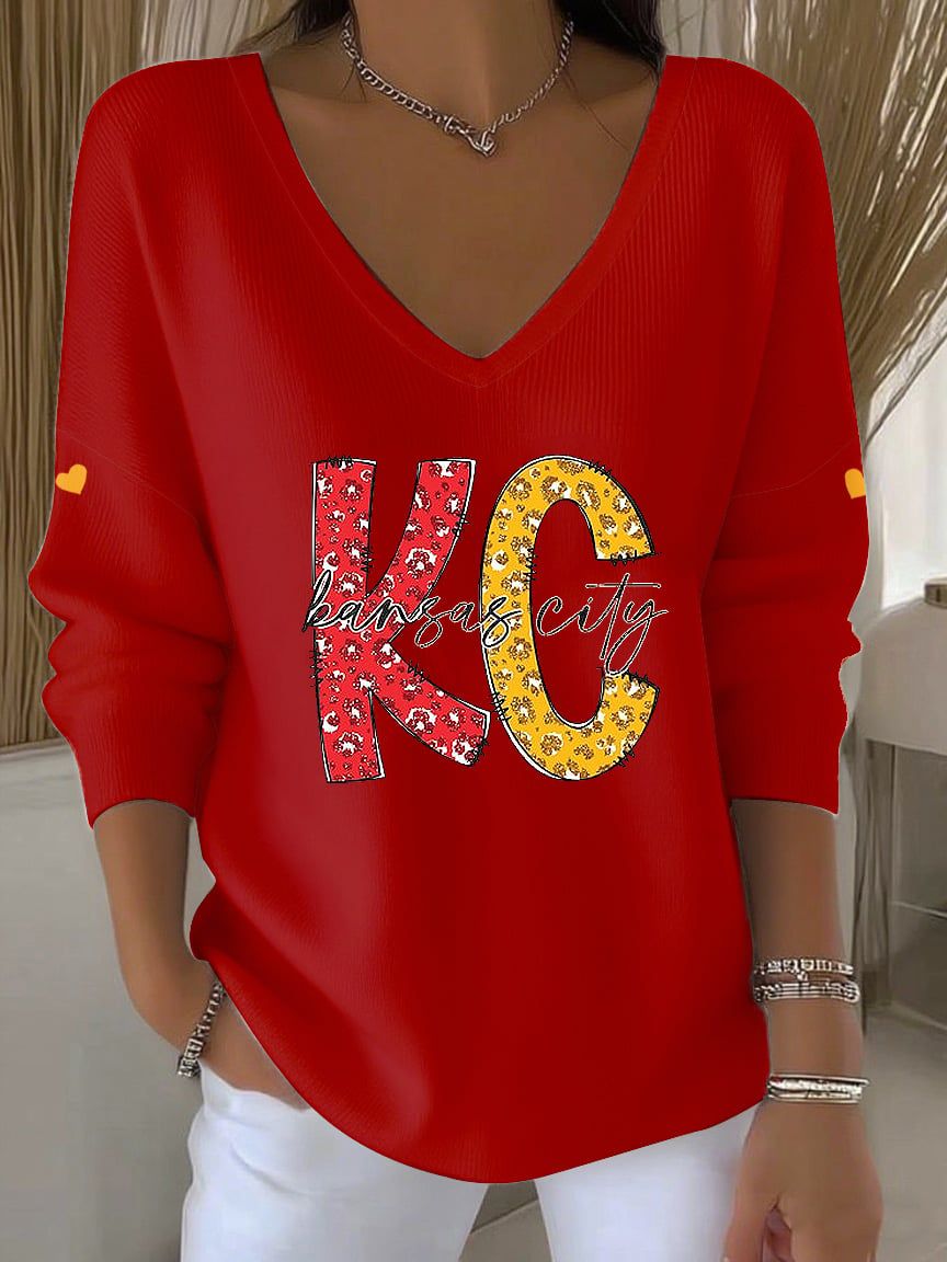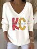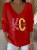 Rugby team color casual Women's Football Print V Neck T-shirt