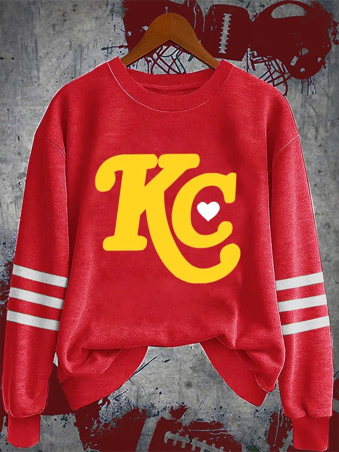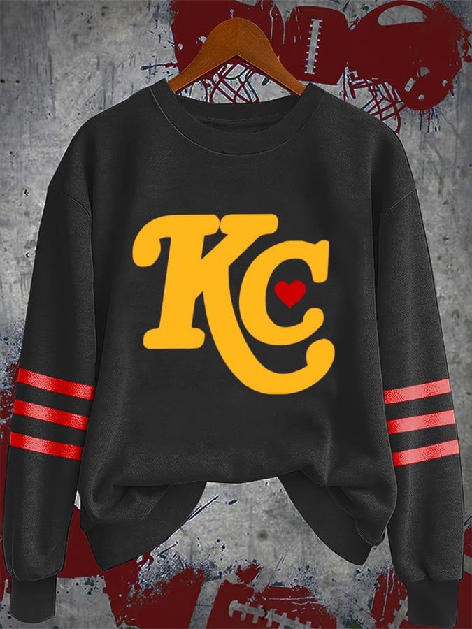 Women's Rugby Print Knit Crew Neck Long Sleeve Top