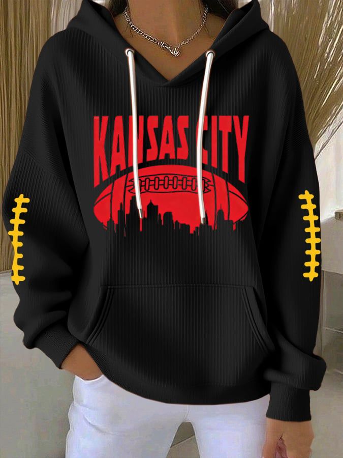 Rugby Team Colored Casual Women's Hooded Printed Sweatshirt