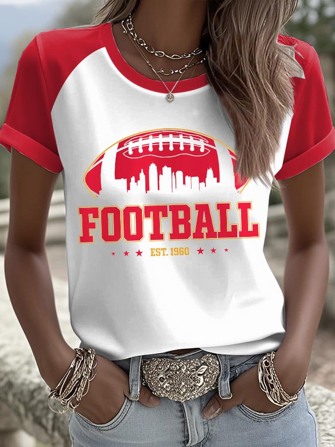 Rugby team color casual Women's Football Print V Neck T-shirt